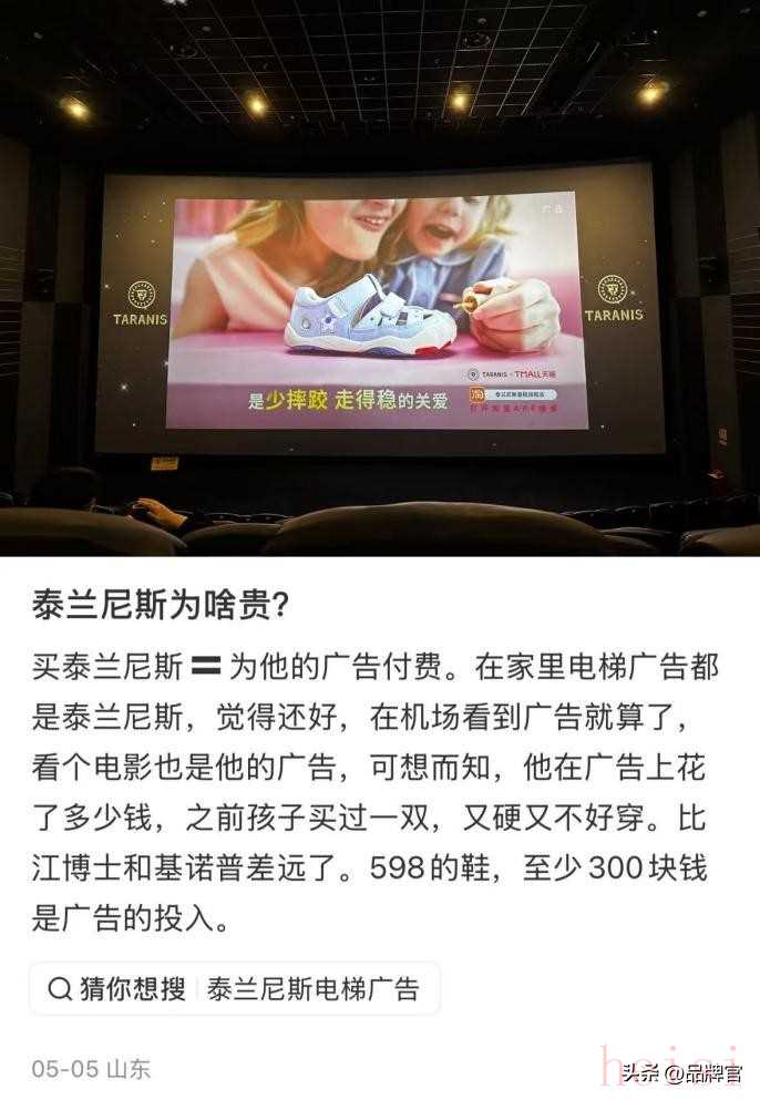 不過,在很多人看來,泰蘭尼斯更像一個踩在廣告與焦慮之間的藝術(shù)家——過去,中產(chǎn)焦慮是買房;現(xiàn)在,中產(chǎn)焦慮是買鞋——童鞋。
