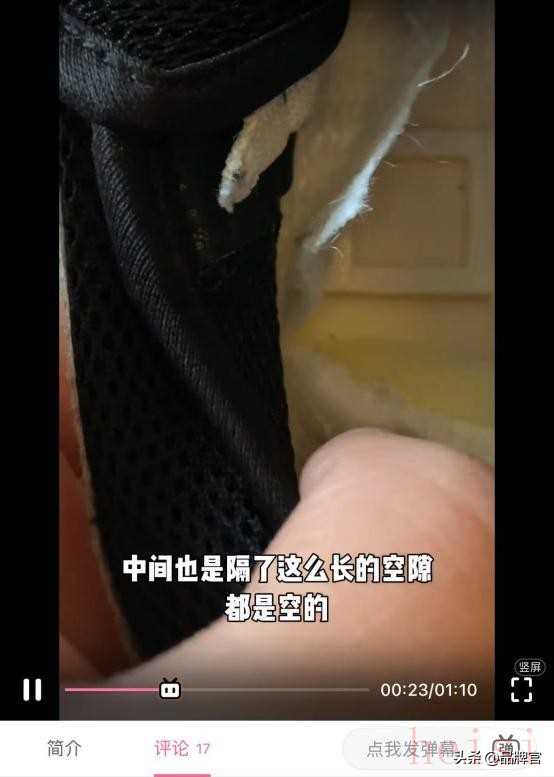有測評博主拆解鞋底后發(fā)現(xiàn),所謂“專業(yè)護足科技”的足弓位置居然是空心的。