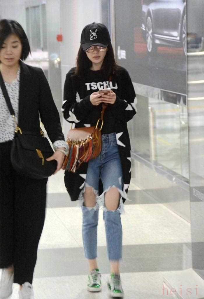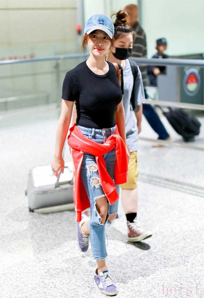 相對比容易撞衫的基礎款牛仔褲,破洞牛仔褲所能呈現的個性感要更強烈些,輕易就能憑借著不規(guī)則、不對稱的鏤空破洞裁剪設計,來提升單品的時尚感,再搭配同樣加入做舊效果的臟臟鞋,凹出一個酷帥又個性的LOOK還不是輕而易舉的事?像蔡依林走機場時就穿了一件破洞牛仔長褲搭配臟臟鞋,小腳褲的版型設計能勾勒出她纖長的腿型,好身材遮不住~