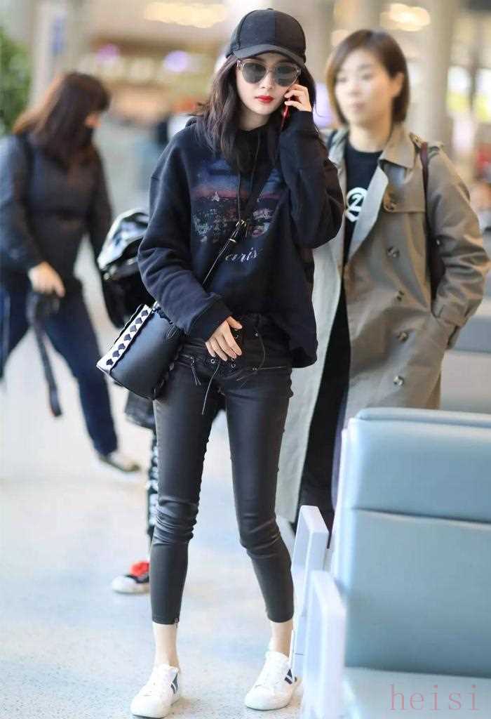 當然,小黑褲中也有駕馭難度系數高的款式,皮質緊身小黑褲就是其中一款,其面料不僅沒有什么回彈性,也會因為自帶的細微光澤而帶來視覺上的膨脹感,再加上修身的版型設計,基本腿部稍微有肉的女生穿、都容易翻車,而像楊冪這種身材的妹子,自然可以挑戰(zhàn)一下皮質緊身小黑褲,選擇九分的款式,再搭配低幫鞋口設計的臟臟鞋,輕易就能凹出一個帥酷個性的街頭造型。