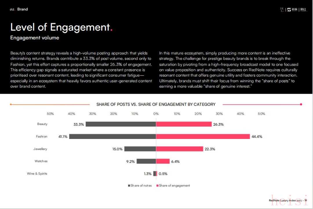 在這個成熟的生態(tài)系統(tǒng)中,單純生產(chǎn)更多內(nèi)容是一種無效的策略。高端美妝品牌要突破這種飽和狀態(tài),需從高頻的 “廣播式” 內(nèi)容模式轉(zhuǎn)向聚焦價值主張與真實性的模式,而這對它們而言是一項挑戰(zhàn)。在小紅書上取得成功,需要打造經(jīng)精心策劃且能引發(fā)共鳴的內(nèi)容 —— 這類內(nèi)容往往源自社區(qū),還能促進(jìn)社區(qū)互動。最終,品牌必須將焦點從 “發(fā)帖份額” 轉(zhuǎn)向贏得更有價值的 “真正的關(guān)注度份額”。
