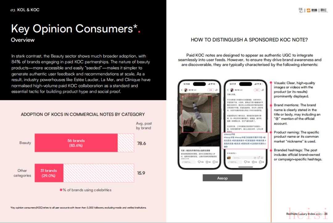 與之形成鮮明對比的是,美妝行業(yè)(在該模式上)的普及程度要廣泛得多,有84%的品牌參與了付費KOC合作。美妝產(chǎn)品的屬性 —— 更容易獲取且便于 “種草”—— 讓大規(guī)模生成真實的用戶反饋和推薦變得更簡單。