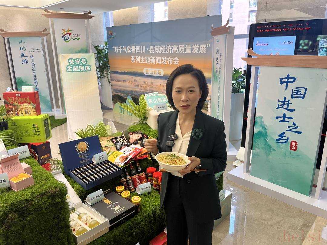 發(fā)布會(huì)后營山縣委副書記、縣人民政府縣長孔北川,走進(jìn)營山特色展區(qū)化身“特產(chǎn)推薦官”為現(xiàn)場嘉賓和媒體介紹營山好物?!盃I山特色涼面,一是面條非常筋道,二是佐以營山自己產(chǎn)的特色紅油?!币贿吔榻B,孔北川一邊現(xiàn)場拌了一碗涼面,麻辣鮮香撲鼻而來。