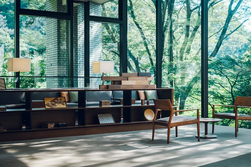 四月中旬,隨著蜿蜒公路行駛來(lái)到山谷之中,星野集團(tuán) 距離箱根湯本站約十分鐘車(chē)程,位于奧湯本、座落在早川溪畔,無(wú)疑是個(gè)遠(yuǎn)離喧囂的理想秘境,氛圍是出奇地安靜澄澈。迎賓大廳以通透的落地玻璃窗妝點(diǎn),將戶(hù)外茂密的樹(shù)林、湯坂山納入室內(nèi)成為最美好的裝飾,加上初夏明媚的光線(xiàn),如夢(mèng)似幻像是某個(gè)電影場(chǎng)景那般不真實(shí)。