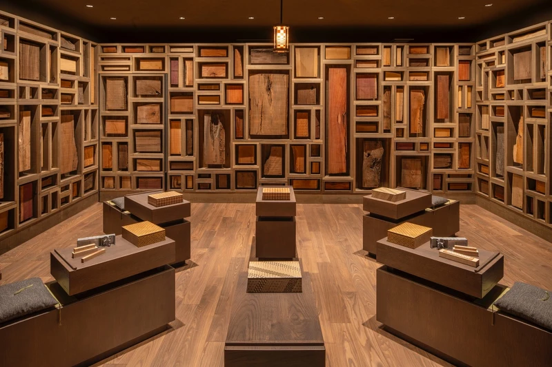 一直以為品牌靈魂,這次的更新更進(jìn)一步強(qiáng)化文化體驗(yàn)。館內(nèi)導(dǎo)入寄木細(xì)工的實(shí)作活動(dòng),讓旅客能親手削出細(xì)木花紋,感受傳統(tǒng)木工的溫度。從家具、燈具到公共空間的細(xì)節(jié),都能看見(jiàn)木作紋理與自然植栽的對(duì)話(huà)。這種工藝的嵌入,不僅延續(xù)箱根在地文化,也讓建筑與風(fēng)景更有呼吸感。