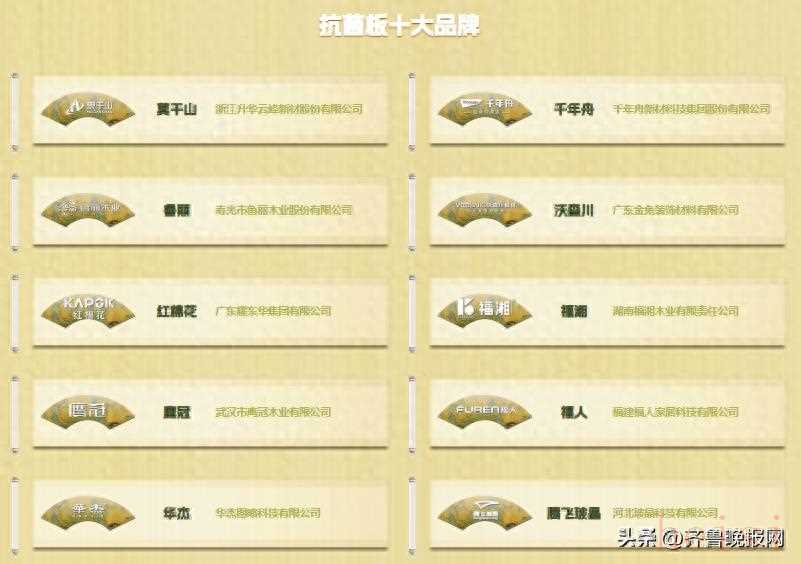 2. "評(píng)選項(xiàng)目:" 《抗菌板十大品牌》。
