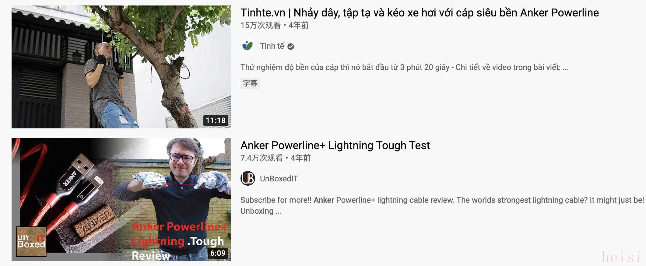 最后做出來的Anker PowerLine數(shù)據(jù)線被網(wǎng)友戲稱為“拉車線”——它能拉動1.5噸的汽車,承受80公斤的重量,引起一眾國外博主的測評風(fēng)潮,用它吊杠鈴片、拉著它做引體向上等等。