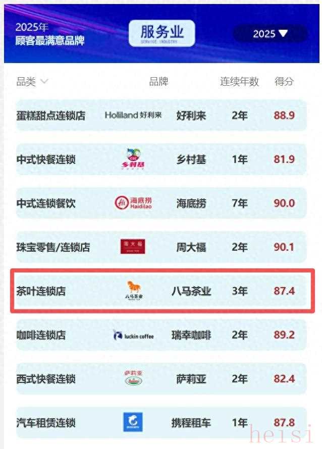 △據(jù)Chnbrand2025年中國顧客滿意度指數(shù)(C-CSI)榜單顯示,八馬茶業(yè)連續(xù)三年蟬聯(lián)茶葉連鎖店顧客滿意度第一