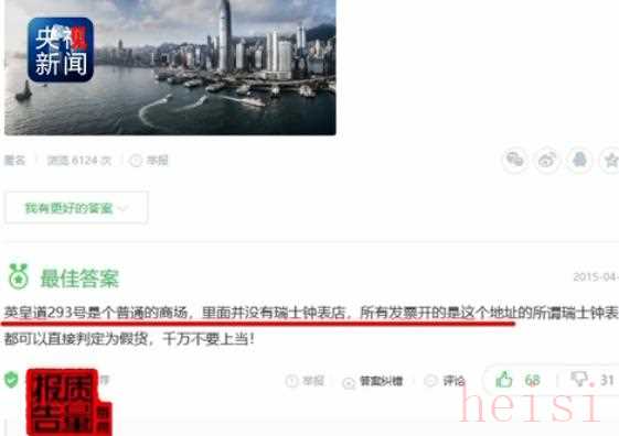 在現(xiàn)場,記者還發(fā)現(xiàn)一款包裝精美的香奈兒手表,不僅包裝盒精美,包裝盒里面還附有很多的票據(jù)。打開包裝盒,首先看到的是一張瑞士珠寶鐘表店的銷售發(fā)票,發(fā)票顯示這家店的地址位于香港英皇道293號,發(fā)票標明表的銷售價格是38000元。除了有發(fā)票,還附有一張名表鑒定證書,以及交易付款時pos機的刷卡單據(jù)??墒?,記者在網(wǎng)絡上查詢香港瑞士珠寶鐘表店地址時,相關結果卻顯示:英皇道293號是個普通的商場,里面并沒有瑞士鐘表店,所有發(fā)票開的是這個地址的所謂瑞士鐘表都可以直接判定為假貨,千萬不要上當!