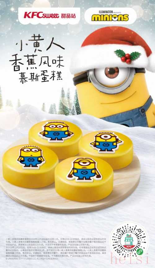 產(chǎn)品不斷推陳出新,更多網(wǎng)紅爆款吸引食客KFC sweet甜品站在環(huán)境風格上做出改變,在產(chǎn)品方面也保持著一貫的高品質。12月20日,小黃人香蕉風味慕斯蛋糕在甜品站首次上市。可萌可甜的小黃人形象,出現(xiàn)在KFC sweet 甜品站的產(chǎn)品之中,這不僅是KFC sweet甜品站在蛋糕甜品上的一次全新嘗試,也是KFC與知名IP的又一次成功聯(lián)名。