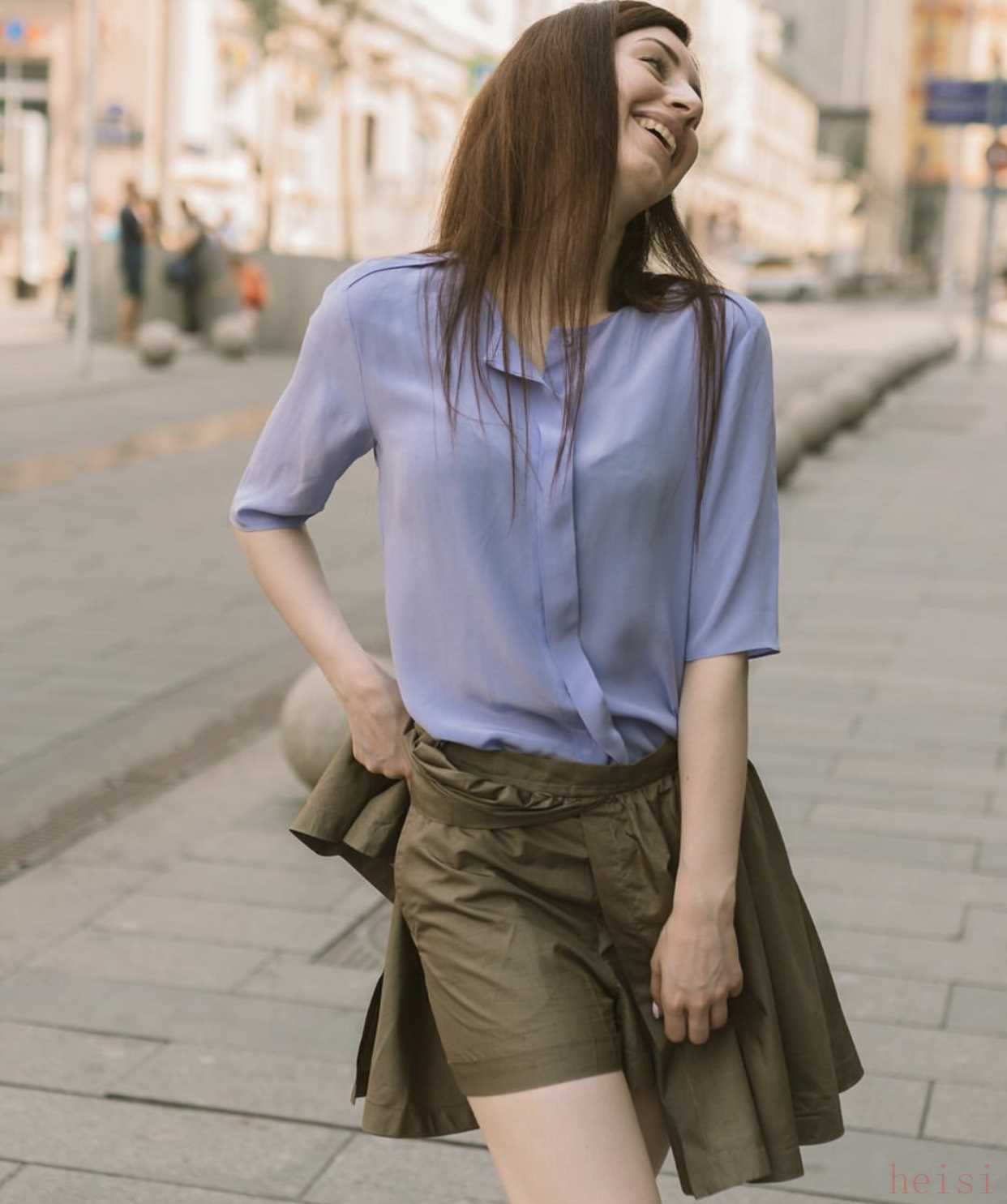 這件藍(lán)色的波點(diǎn)襯衫,采用極具魅力的襯衫口V領(lǐng)設(shè)計(jì),低胸向來是法式穿搭的秘訣。而且很好搭配,配白色闊腿褲或者牛仔褲,都十分的慵懶。