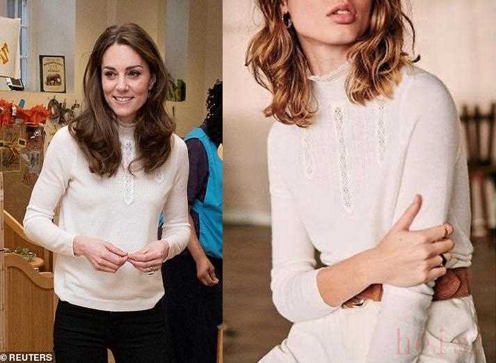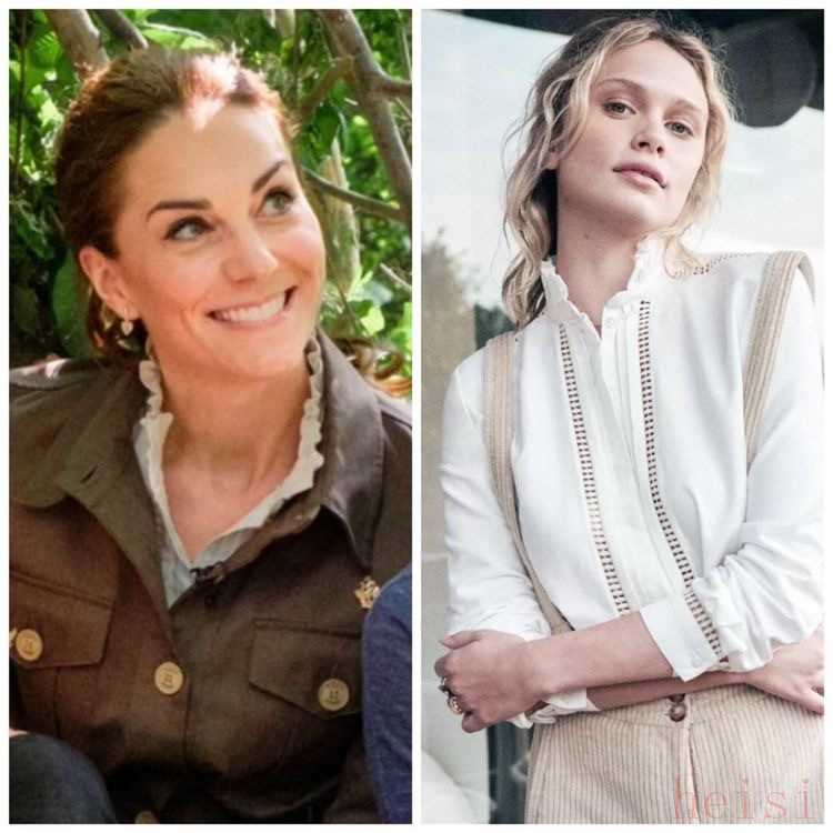 凱特王妃也穿過Sézane類似的襯衫,用外套中和了甜美。