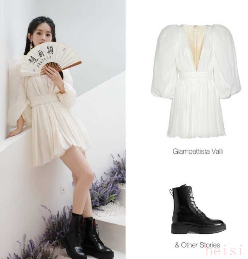 最近趙麗穎被夸上熱搜的造型中,MuseMarry x Giambattista Valli 禮服搭配它家的馬丁靴,完全看不出是一個孩子的媽媽~