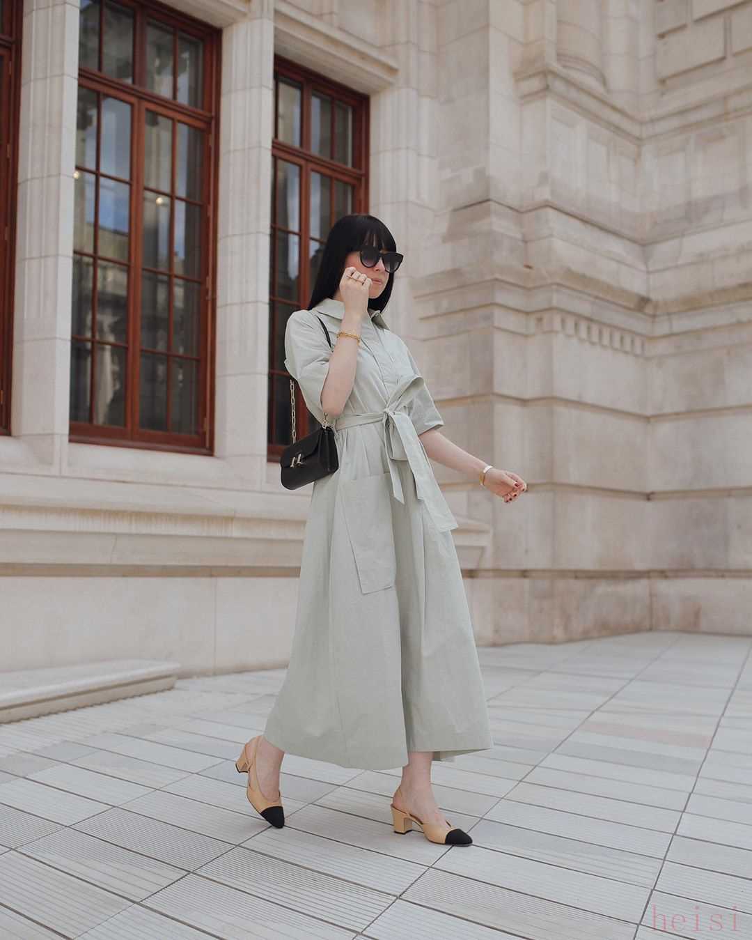 這款連衣裙延續(xù)了cos一貫的極簡設(shè)計(jì)風(fēng)格,簡單的連衣裙款式和腰帶的結(jié)合,最讓我驚喜的就是顏色,豆綠色和順滑的材質(zhì)組合在一起,真的能讓人感受到夏日的清涼。