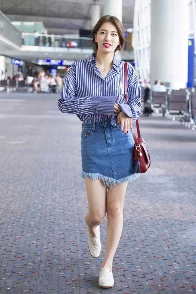 裴秀智機(jī)場街拍穿Recto條紋襯衫