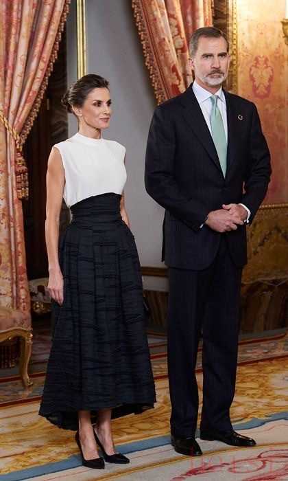 黑白拼接的恰到好處讓腰線突出,胸花的加入讓單調(diào)的黑白兩色瞬間精彩起來。