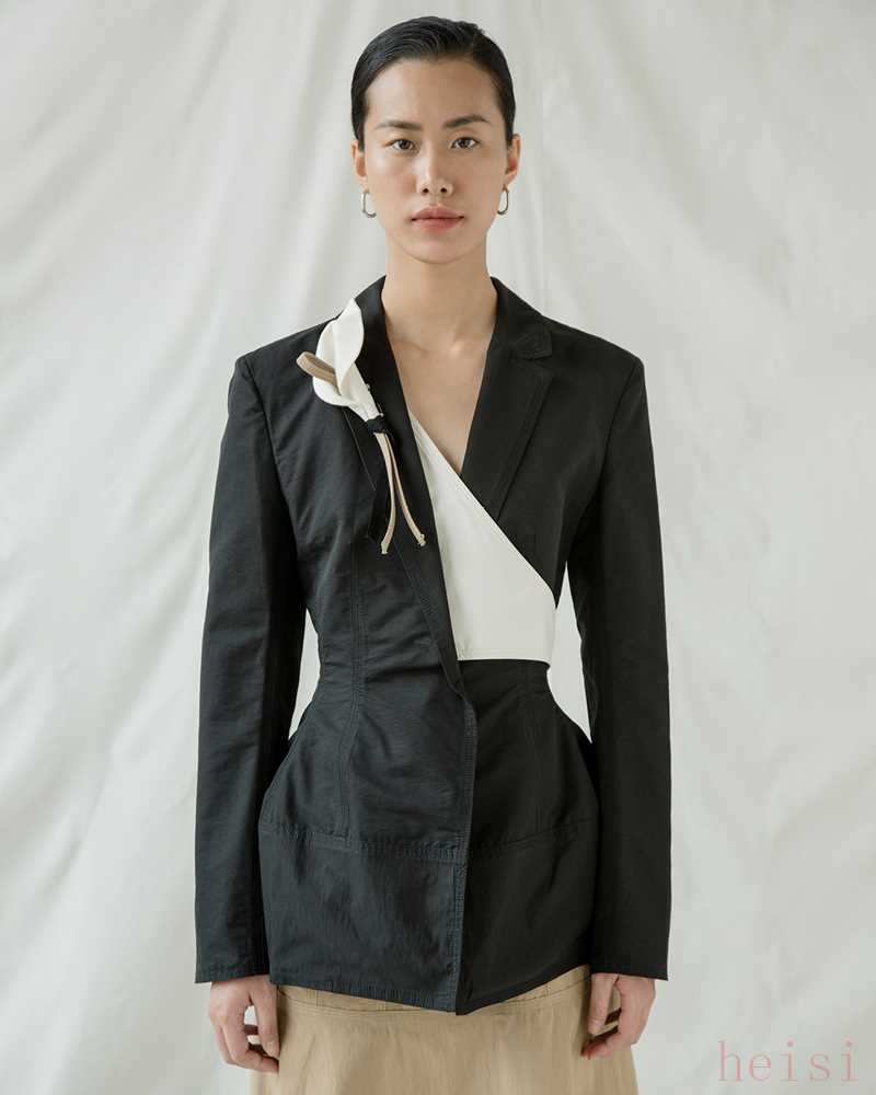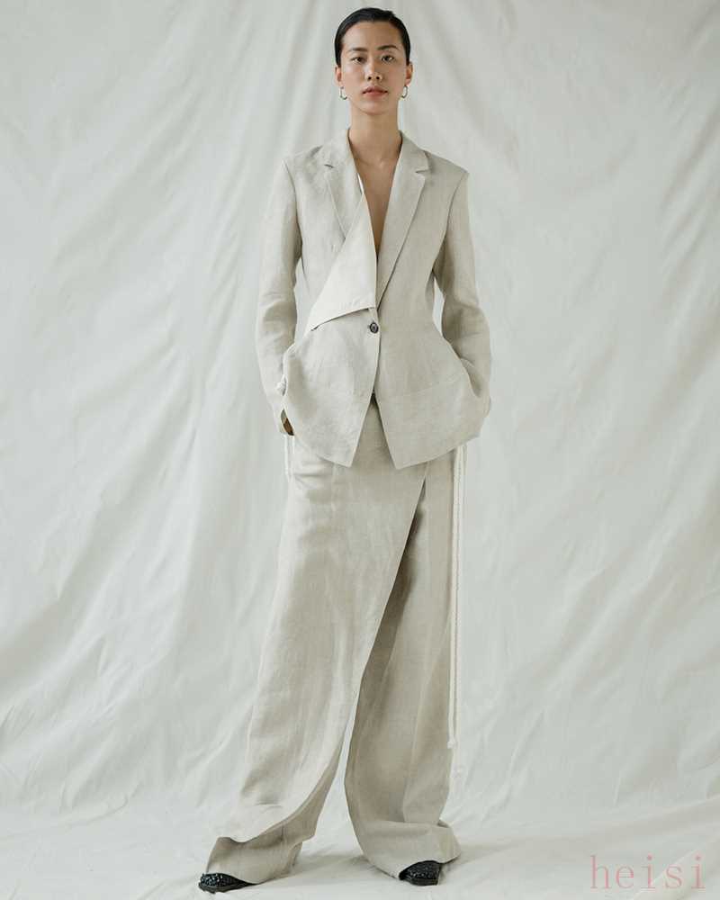 利落、干脆的廓形讓其成衣給人一種低調(diào)而不失溫度的感覺,硬挺但順滑的面料,十分注重服裝舒適度。