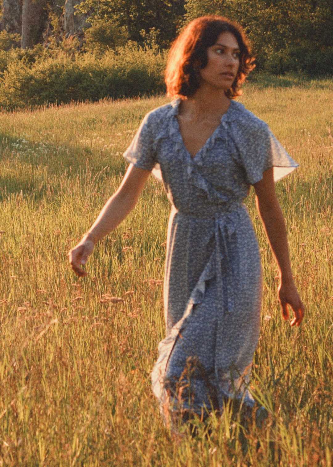 這件藍(lán)色碎花的裙子顏色超級溫柔,和輕薄的材質(zhì)很配,挑高的腰線和系帶設(shè)計(jì)調(diào)整了身材比例,直接襯出細(xì)腰長腿,高跟鞋和平底鞋都可以駕馭,怎么看都是360度無死角的優(yōu)雅女神。