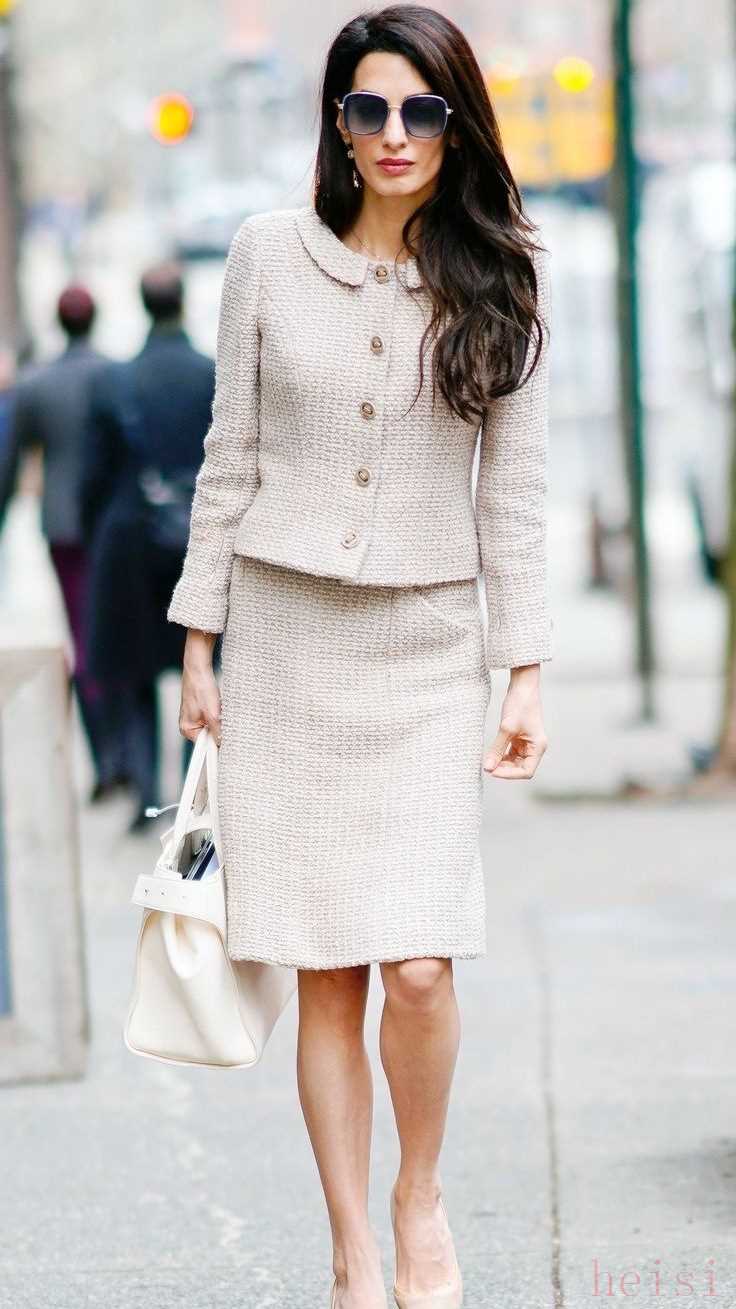 同樣是香奶奶套裝,喬治·克魯尼的律師妻子艾莫·阿拉慕丁,穿得就比皇室公主要有氣場。