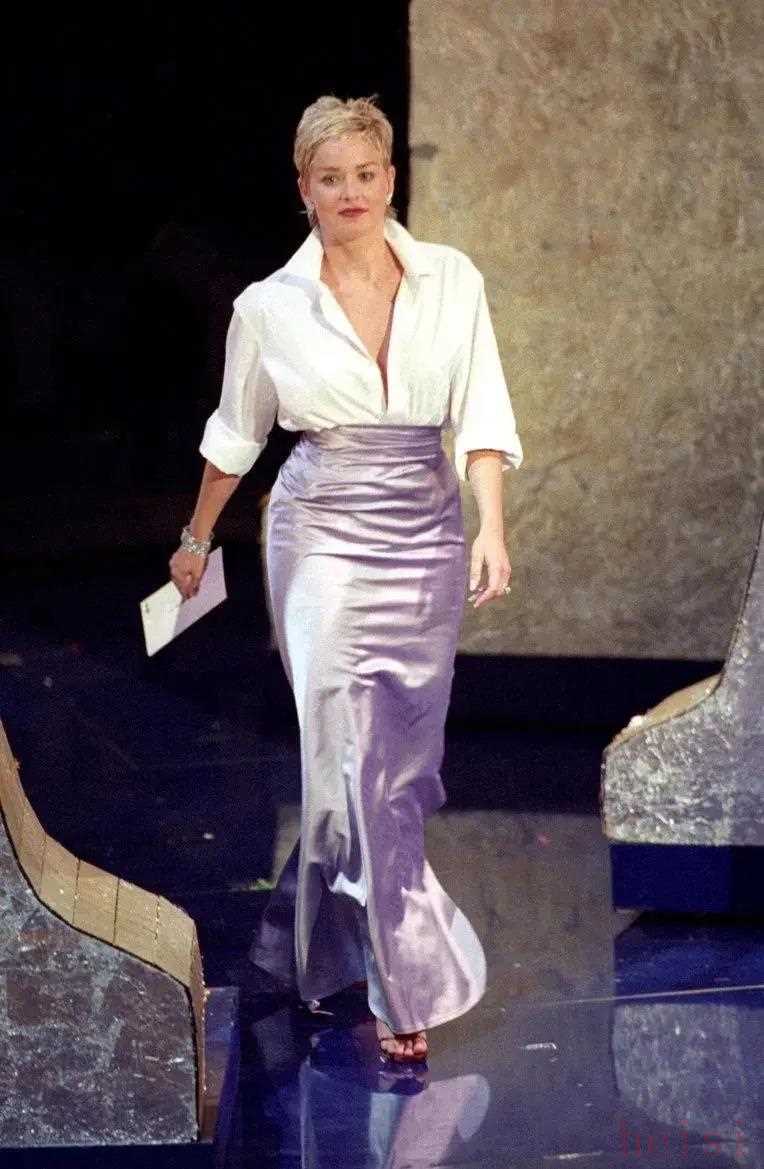 Sharon Stone 1998年走紅毯的這套造型,她穿的這件襯衣就是39美刀的Gap。