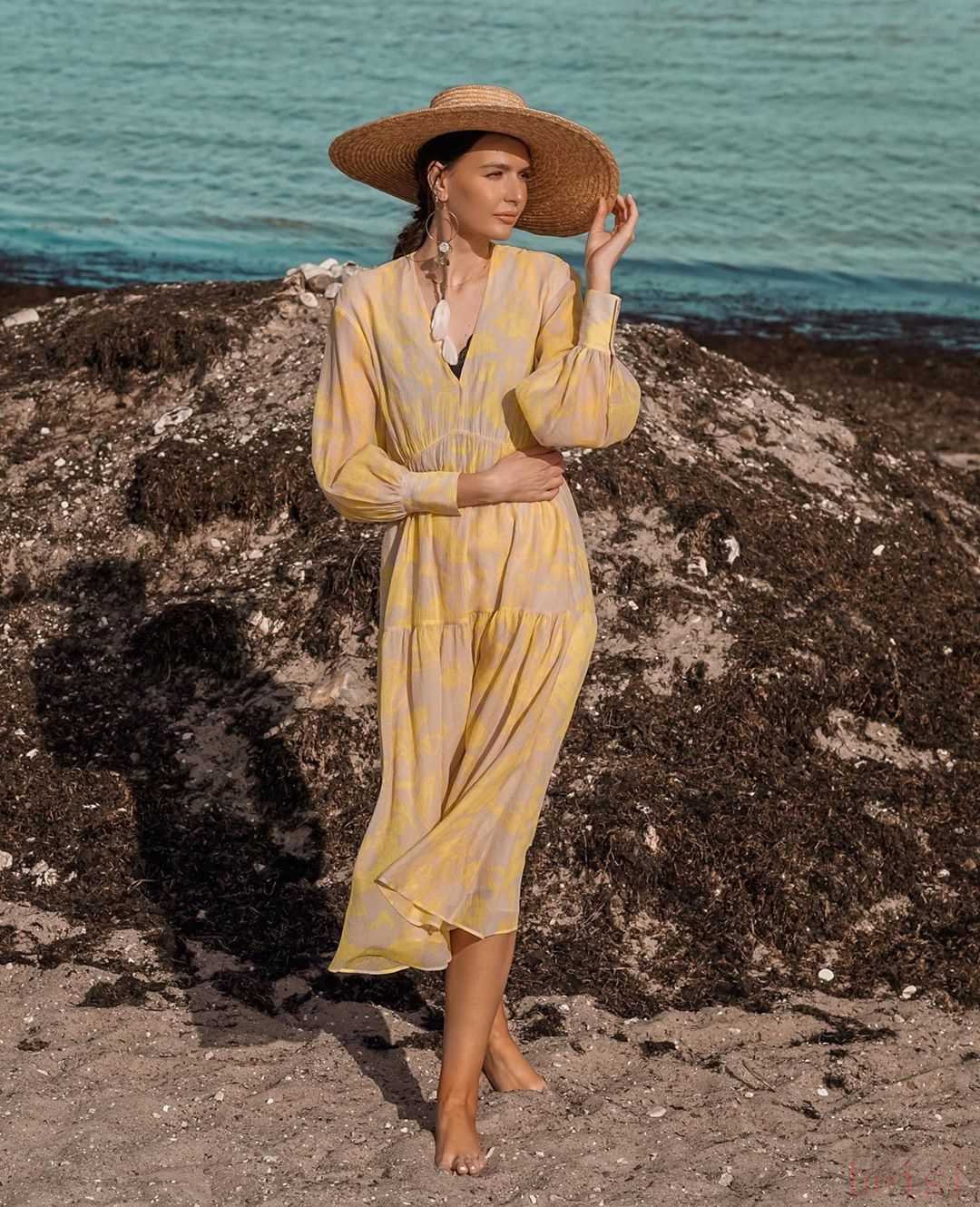 淡黃飄逸連衣裙