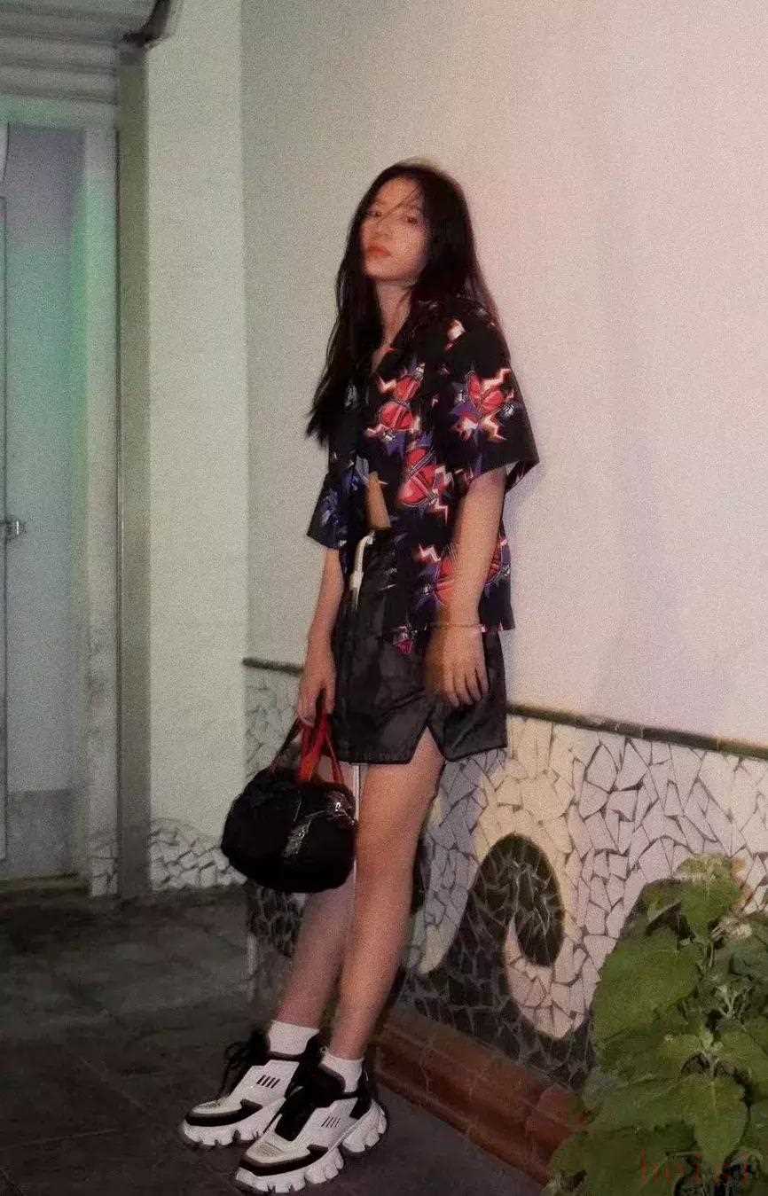 關曉彤穿的是白色款式,想象中,也許鉛筆裙應該配一雙細高跟才對,但看看下面的搭配,其實鉛筆裙配球鞋也許就是年輕人穿衣的態(tài)度吧。
