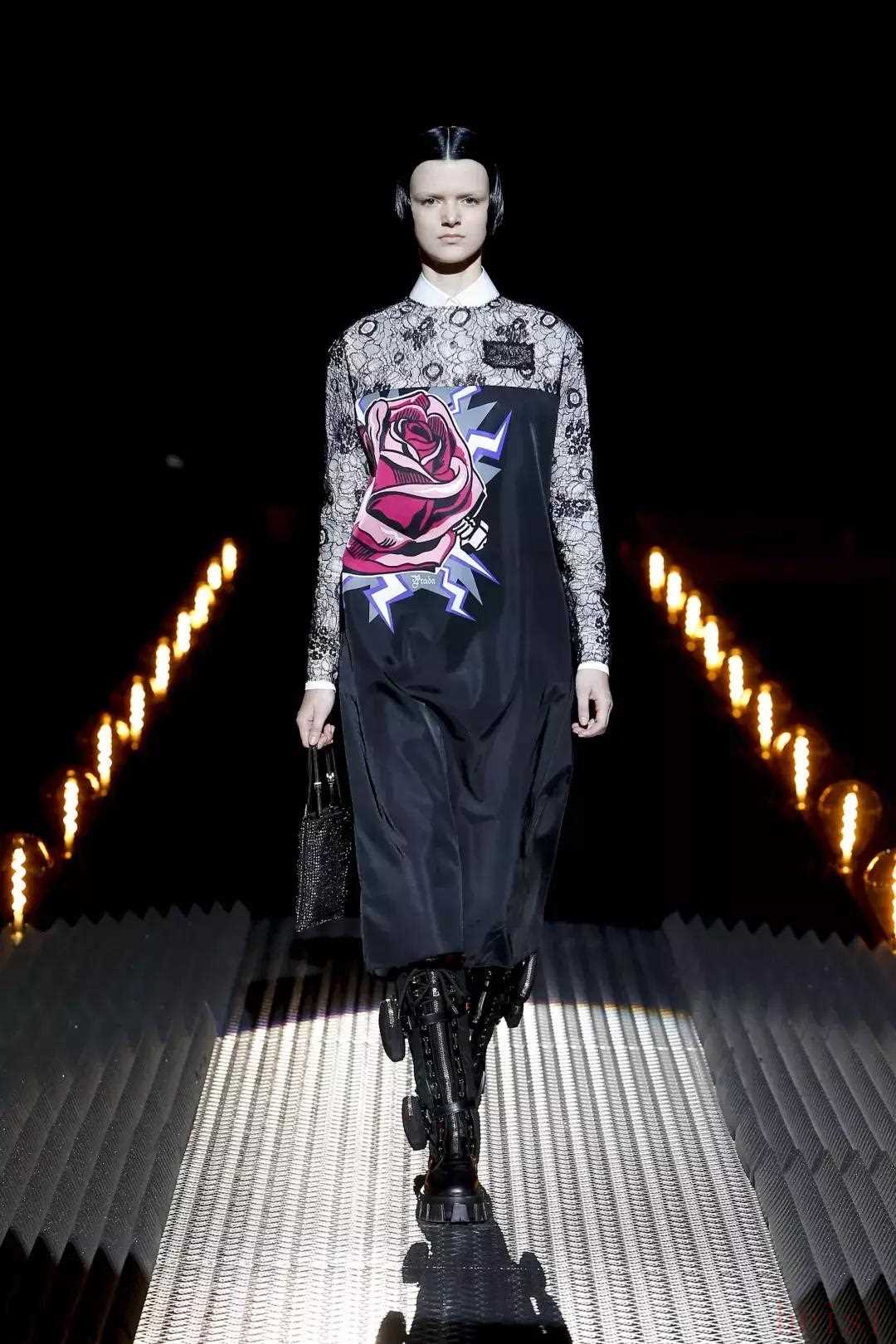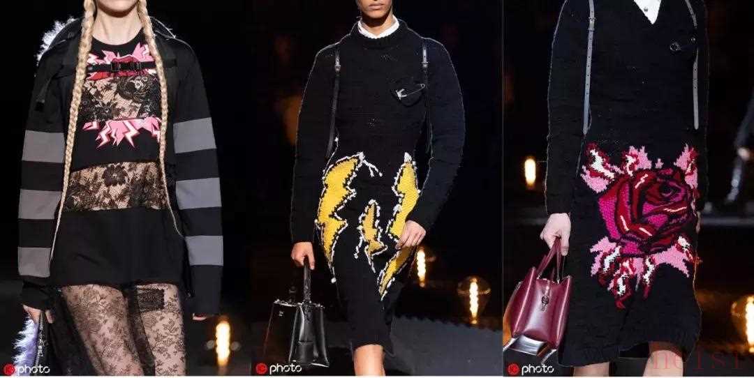 生活中常見的事物被插畫化,閃電、玫瑰、火焰,它讓一件衣服變得更多元和鮮明。其實Prada的歷史上有很多標志性的圖案,諸如口紅、香蕉和閃電,這些圖案更能代表年輕人個性的態(tài)度,所以備受她們喜愛: