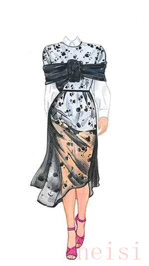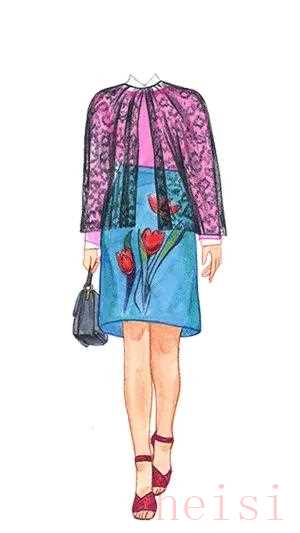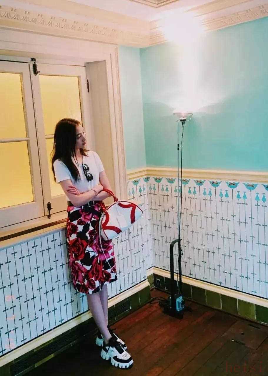 雪莉用一條玫瑰插畫裙搭配它,氣質更溫柔一些。