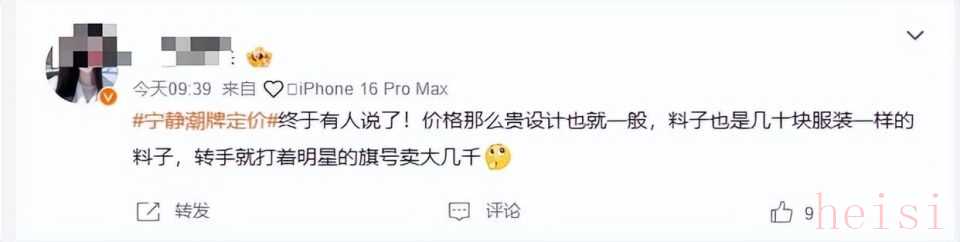 近日,演員寧靜所創(chuàng)立潮牌NJ RAINER所售賣服裝價格引網(wǎng)友熱議。