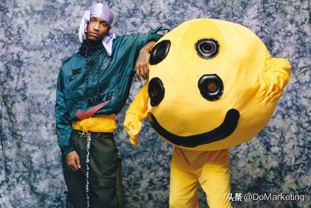 比如,去年8 月 27 日那天,CPFM在品牌官方 Instagram 賬號(hào)發(fā)布了一篇全新的視頻動(dòng)態(tài),說唱歌手 Nelly 在畫面中展示了兩雙以 Nike Air More Uptempo 鞋款元素打造的 Air Force 1 鞋款,以此作為與 Nike 全新聯(lián)名的先導(dǎo)預(yù)告。而此次麥當(dāng)勞與CPFM的合作中,代表麥小黃人的臉部形象,同樣是那個(gè)風(fēng)靡世界的“四眼笑臉”。