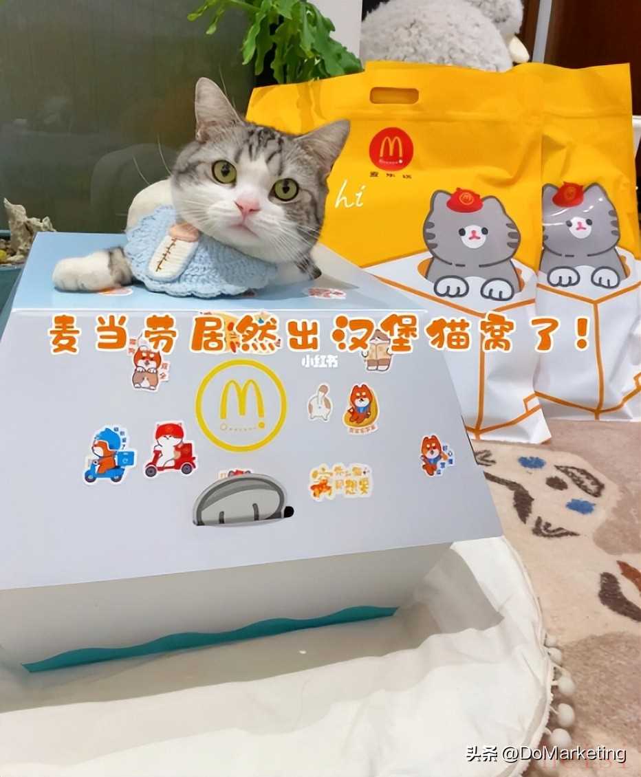 比如,針對(duì)當(dāng)下越來越多年輕人擼貓的趨勢(shì)。麥當(dāng)勞推出了限量版的漢堡盒“貓窩”套餐,在規(guī)定時(shí)間內(nèi)購(gòu)買“麥樂送”指定套餐,就可以得到一份顏色隨機(jī)的漢堡貓窩。