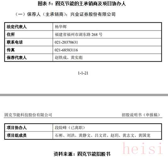 需注意的是,此次IPO,如圖表5所示,固克節(jié)能的主承銷(xiāo)商為興業(yè)證券,項(xiàng)目協(xié)辦人為段險(xiǎn)峰。但據(jù)招股書(shū)披露,該IPO項(xiàng)目協(xié)辦人段險(xiǎn)峰已離職,其離職原因是否與固克節(jié)能有關(guān)?
