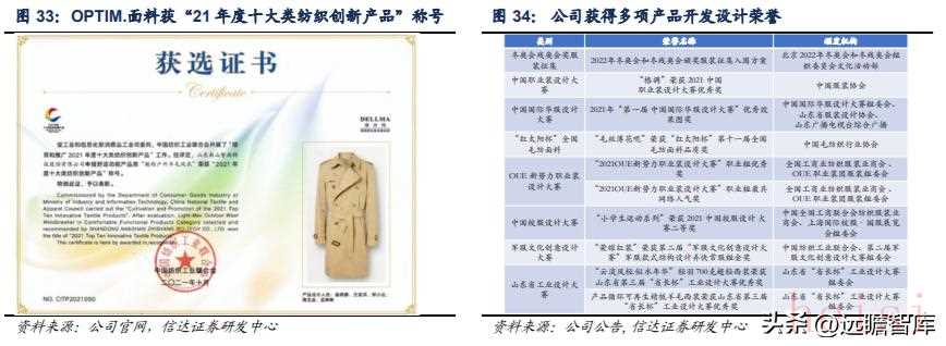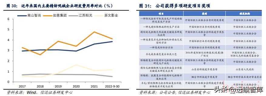 持續(xù)推進設計研發(fā),科研成果豐厚。公司重視設計研發(fā),近年來研發(fā)投入的營收占比基本保持在 2.90%以上。公司致力于羊毛技術的創(chuàng)新研發(fā)和市場推廣,擁有完善的產(chǎn)品研發(fā)和科技創(chuàng)新體系,同國際羊毛局合作建立全球唯一的國際羊毛創(chuàng)新中心(WDC)。