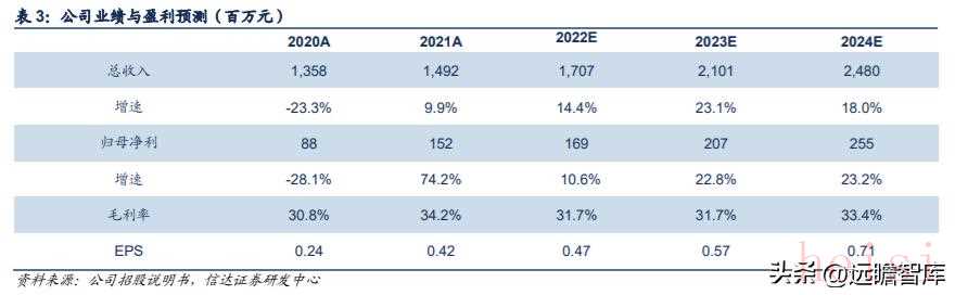 綜上我們預計,2022-24 年公司收入為 17.07/21.01/24.80 億元,同增 14.43%/23.08%/18.02%。
