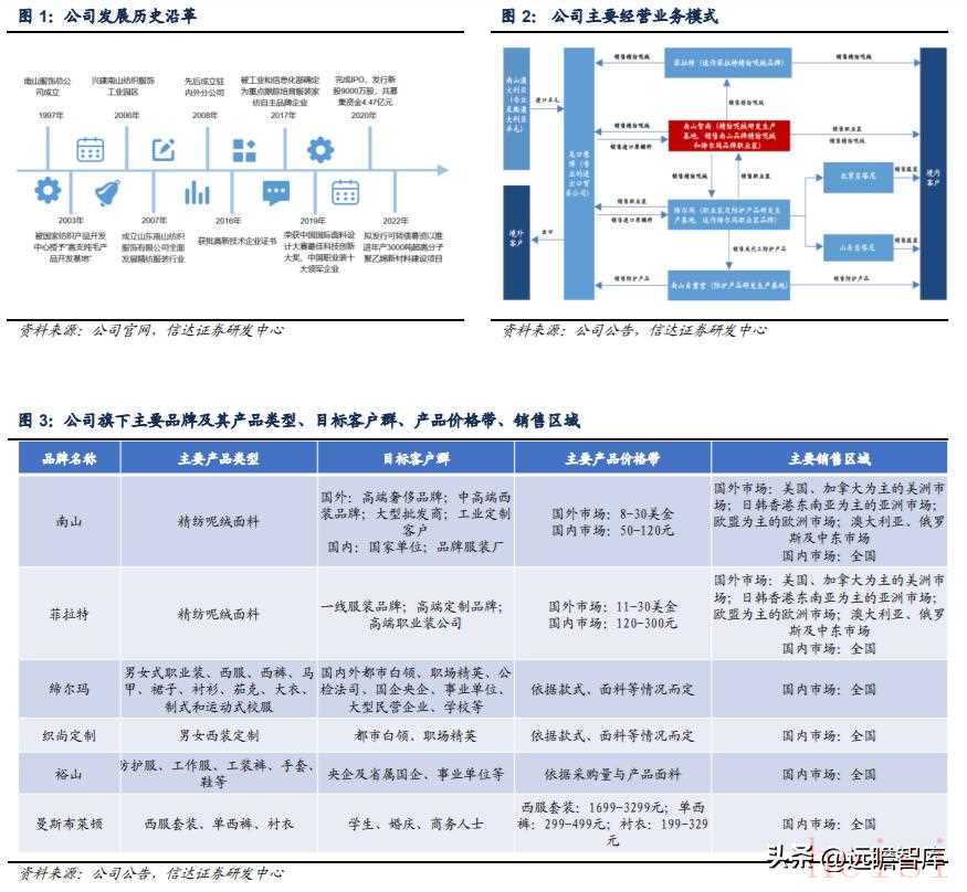 公司自 1997 年成立以來,始終從事精紡呢絨、服裝產(chǎn)品的研發(fā)、設計、生產(chǎn)和銷售,擁有 從羊毛到成衣完整的毛紡織服裝產(chǎn)業(yè)鏈,現(xiàn)已成為全球知名的毛紡織服裝產(chǎn)業(yè)鏈一體化企 業(yè)。