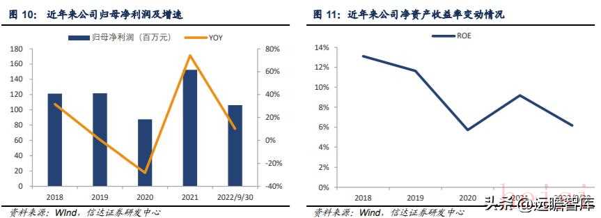 凈資產(chǎn)收益率 方面,2020 年公司登陸創(chuàng)業(yè)板,所有者權益大幅增加,帶動 ROE 同比下降 5.92PCT 至 5.72%;2021 年公司盈利能力大幅提升,帶動 ROE 同增 3.46PCT 至 9.18%。