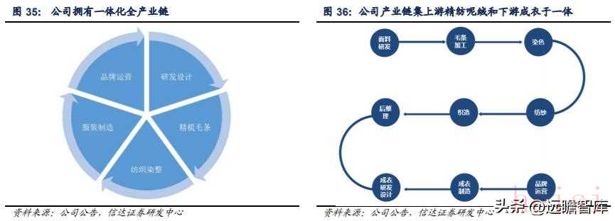公司擁有完善的毛紡織服裝產(chǎn)業(yè)鏈,覆蓋上游原材料采購、面料研發(fā)、毛條加工、染色、紡紗、制造、后整理于一體的精紡呢絨業(yè)務,以及下游成衣研發(fā)、設計、制造、品牌運營。