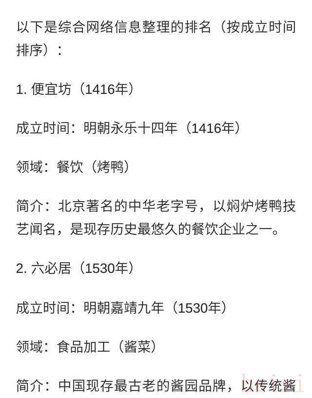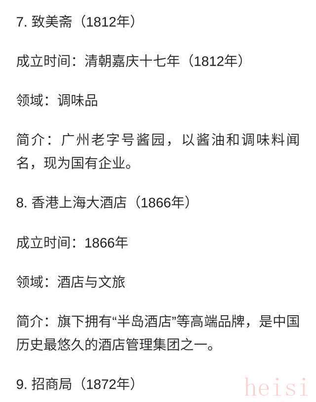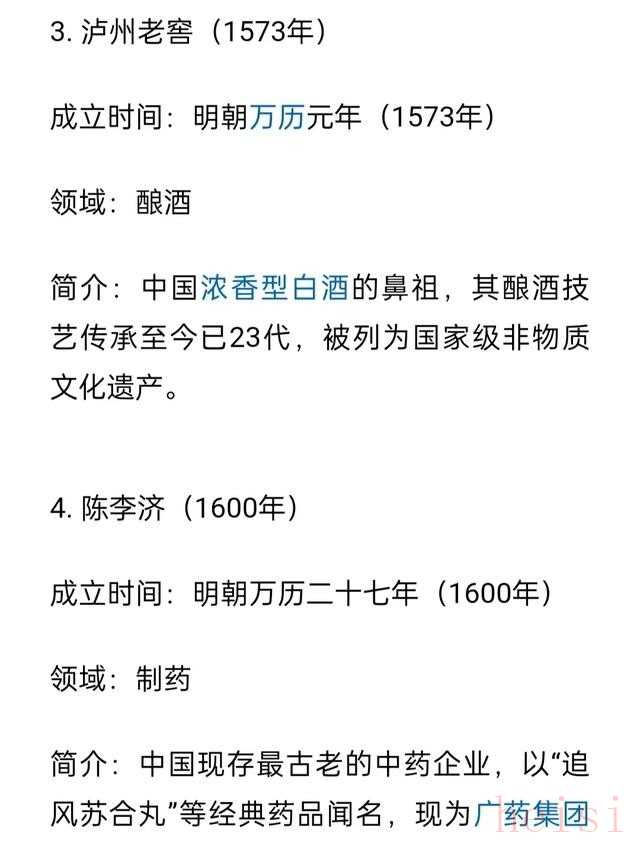 至于中國的最長壽公司排行,由于中國的歷史和商業(yè)環(huán)境與日本有所不同,很難找到一個(gè)明確的、持續(xù)記錄的公司排行。然而,根據(jù)現(xiàn)有的資料和歷史記載,以下是一些可能被認(rèn)為是中國最長壽的公司: