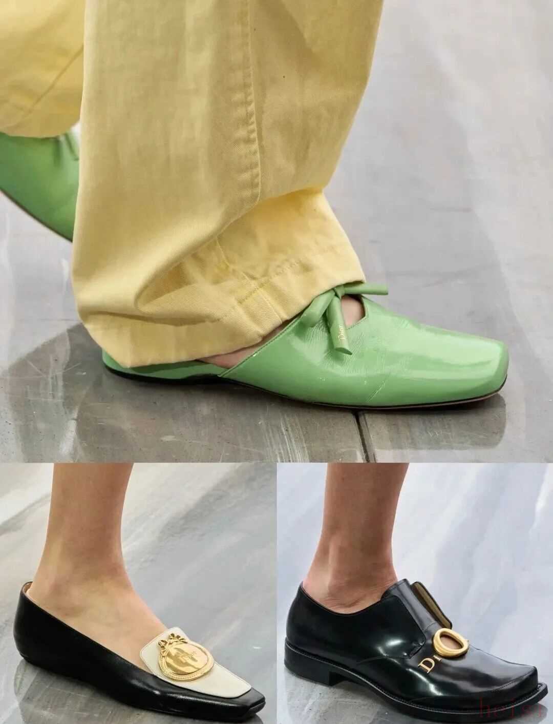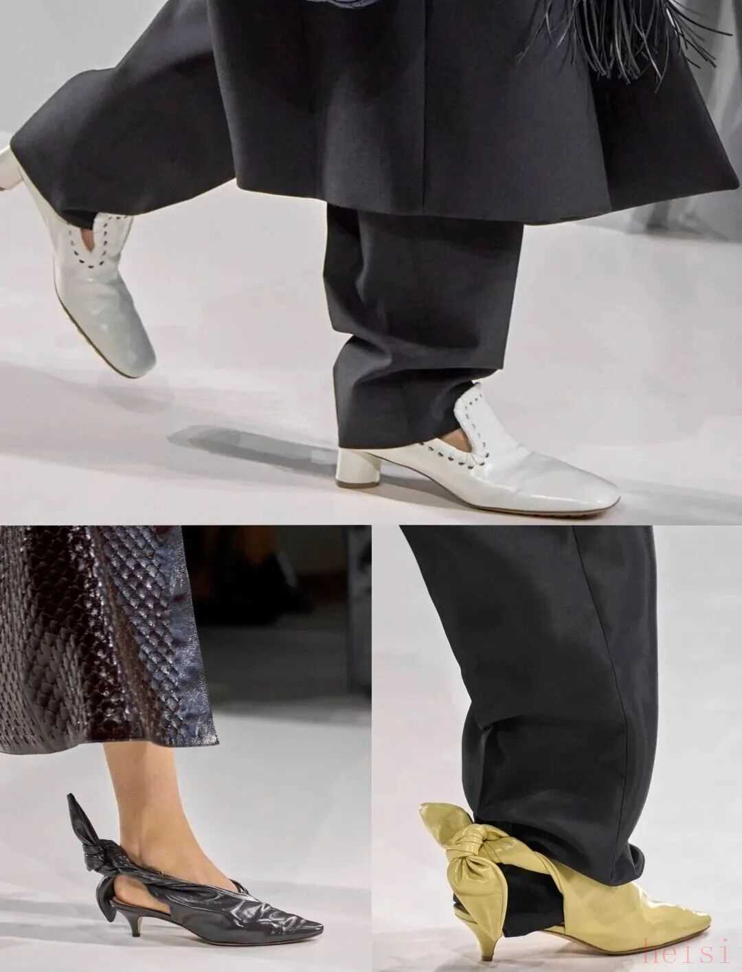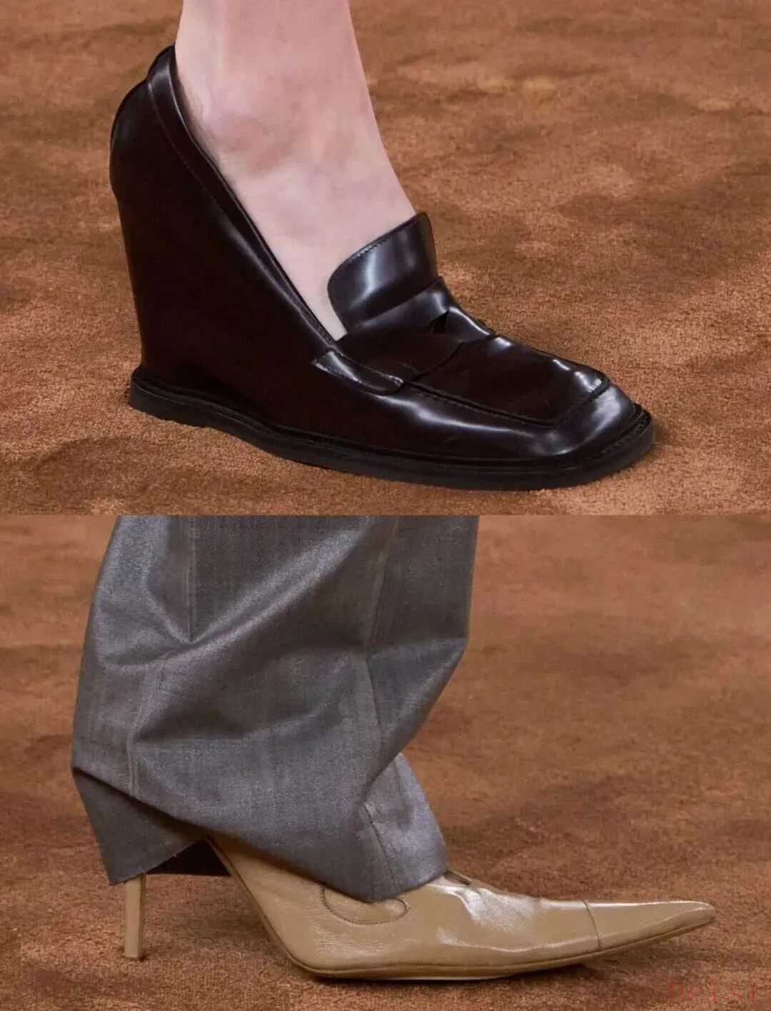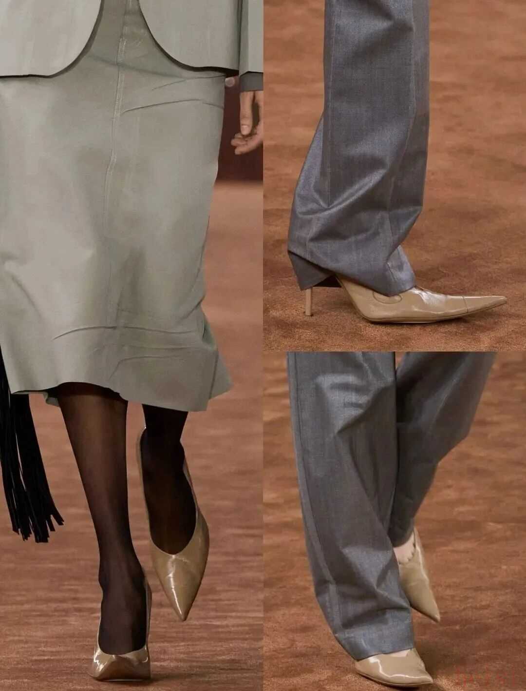 "尖頭鞋的柔和化:" 尖頭鞋一直是巴黎時裝周的寵兒