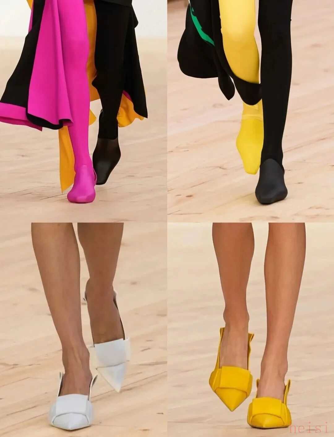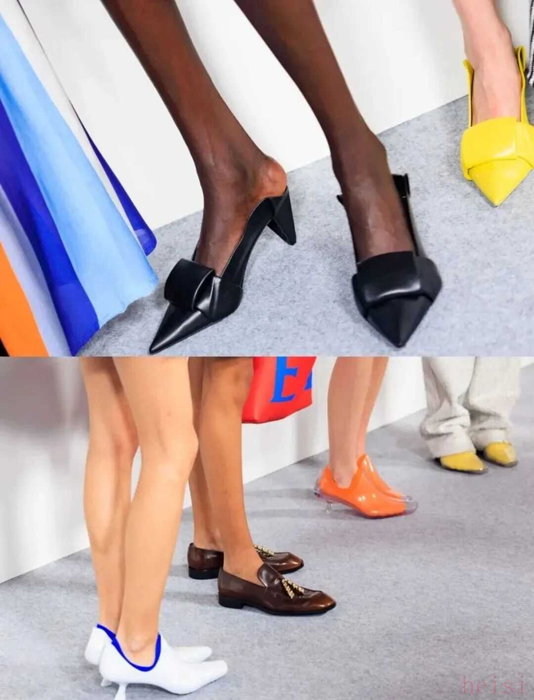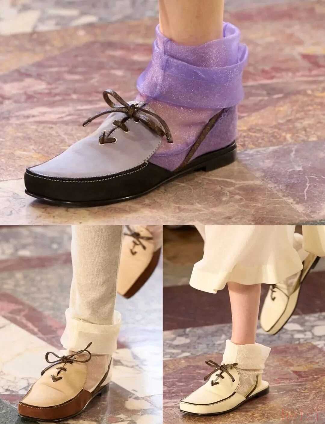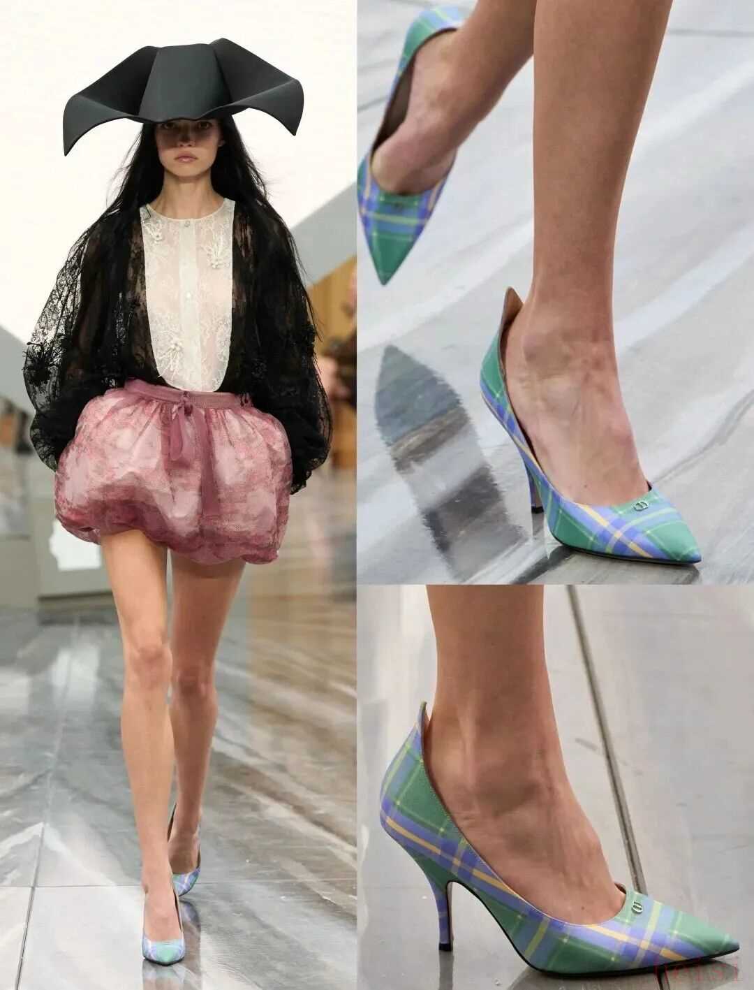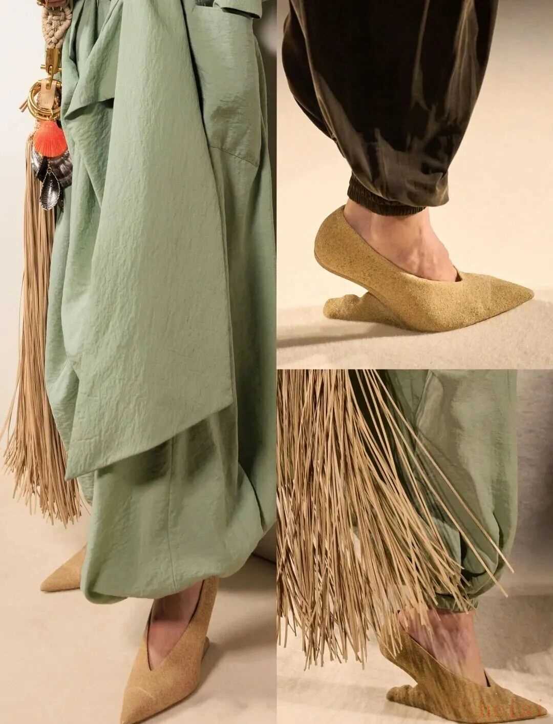 "尖頭鞋的柔和化:" 尖頭鞋一直是巴黎時裝周的寵兒