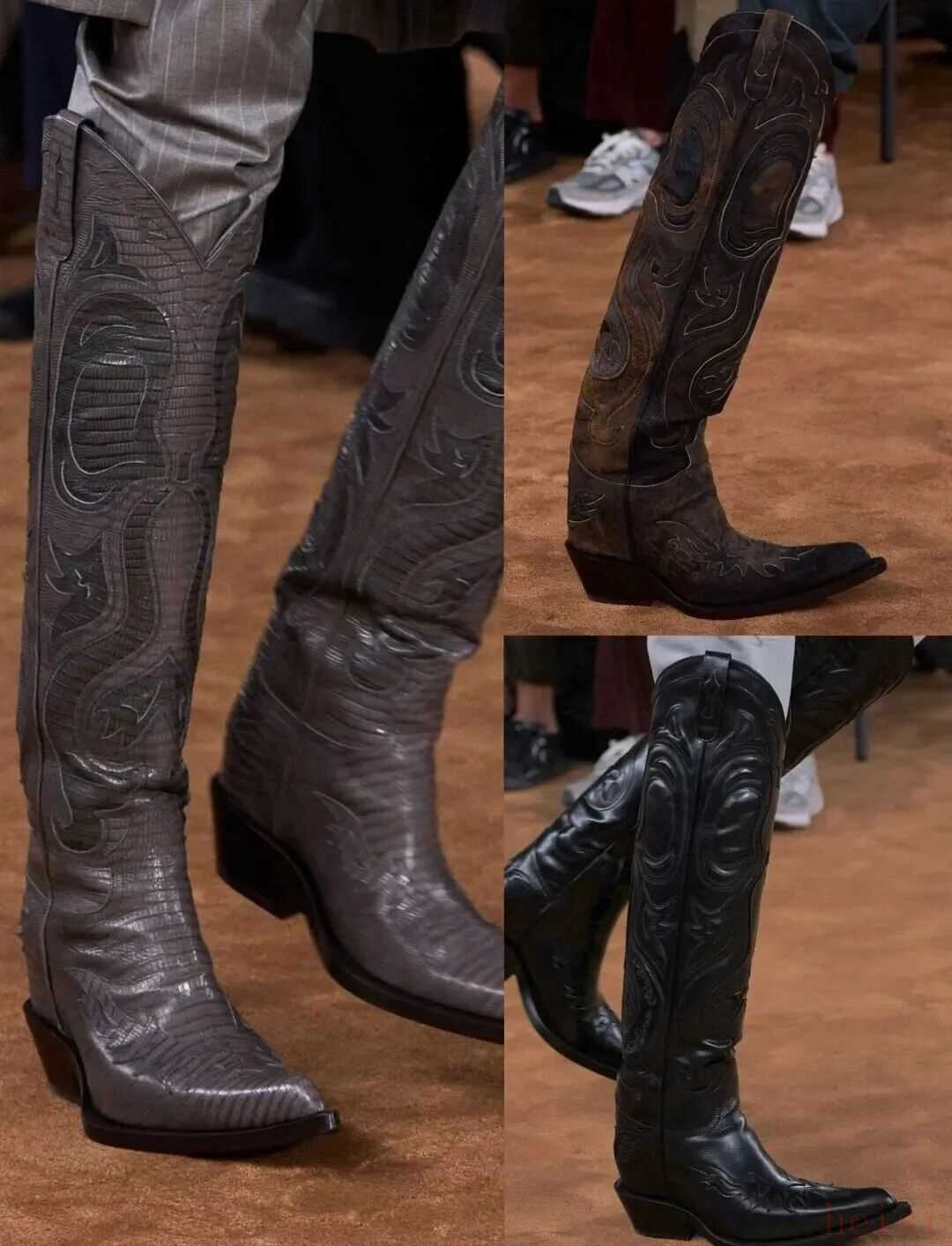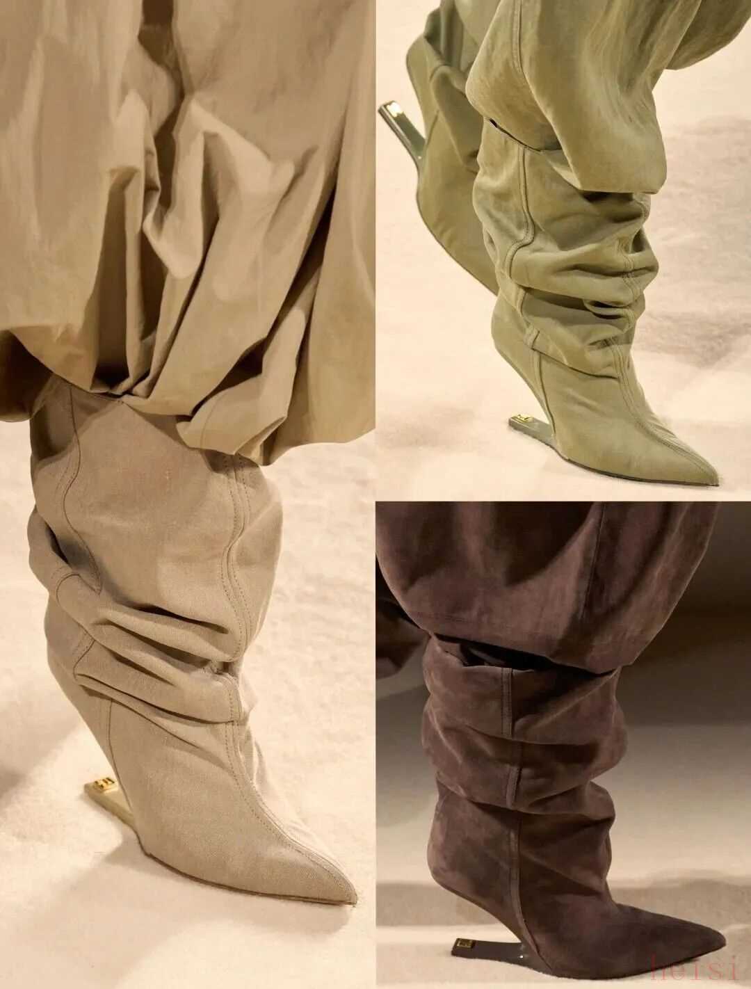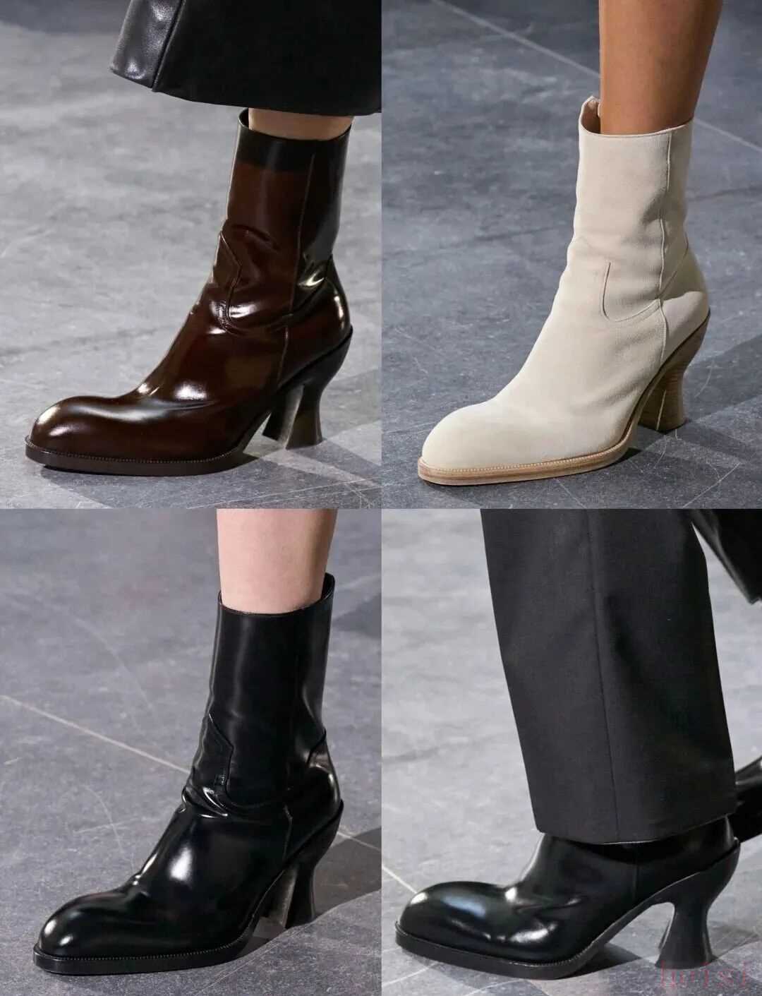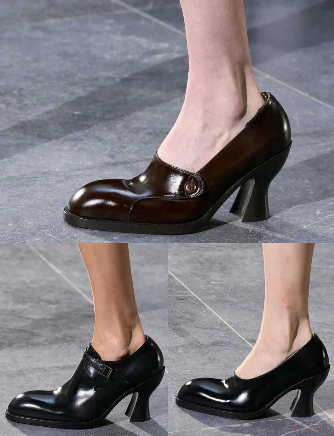 "尖頭鞋的柔和化:" 尖頭鞋一直是巴黎時裝周的寵兒