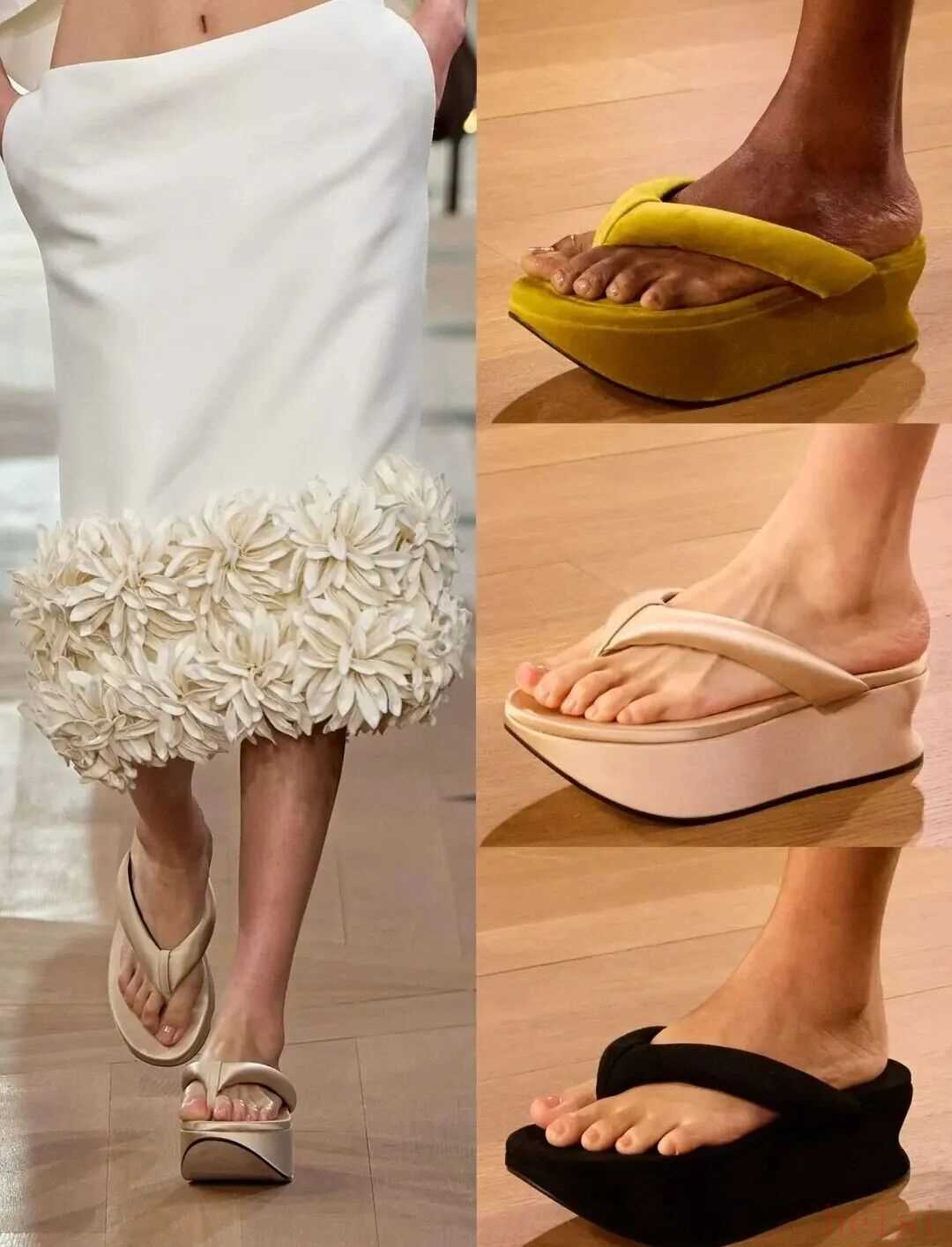 "厚底鞋的進(jìn)化:" 厚底鞋在2026春夏繼續(xù)流行,但不再是簡單的粗獷風(fēng)格,而是更加注重細(xì)節(jié)和設(shè)計感。細(xì)高跟厚底鞋、金字塔厚底鞋、甚至帶有金屬裝飾的厚底鞋都成為了熱門款式。品牌如Manolo Blahnik、Stuart Weitzman等推出了許多精致優(yōu)雅的厚底鞋款,將力量與優(yōu)雅完美融合。