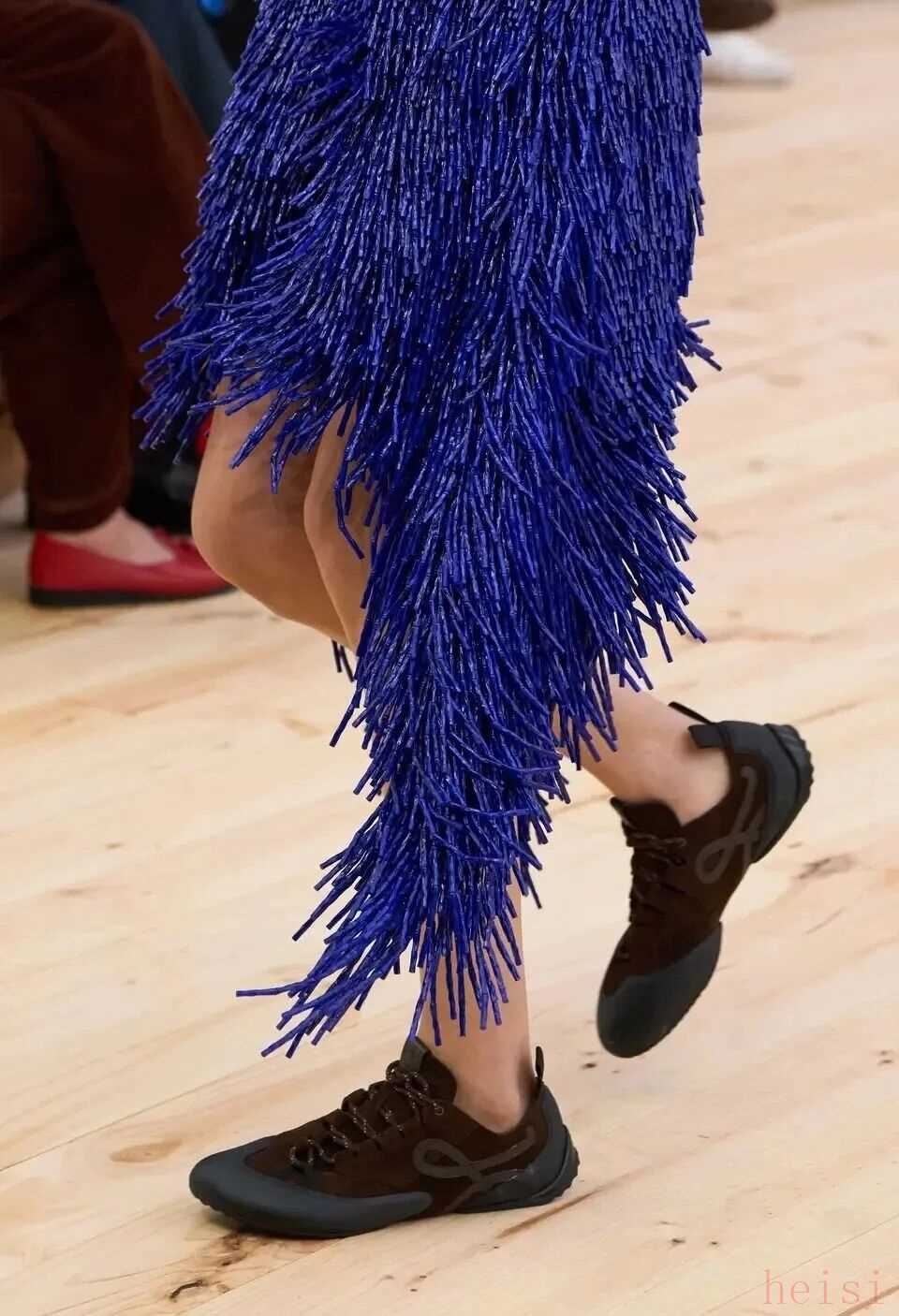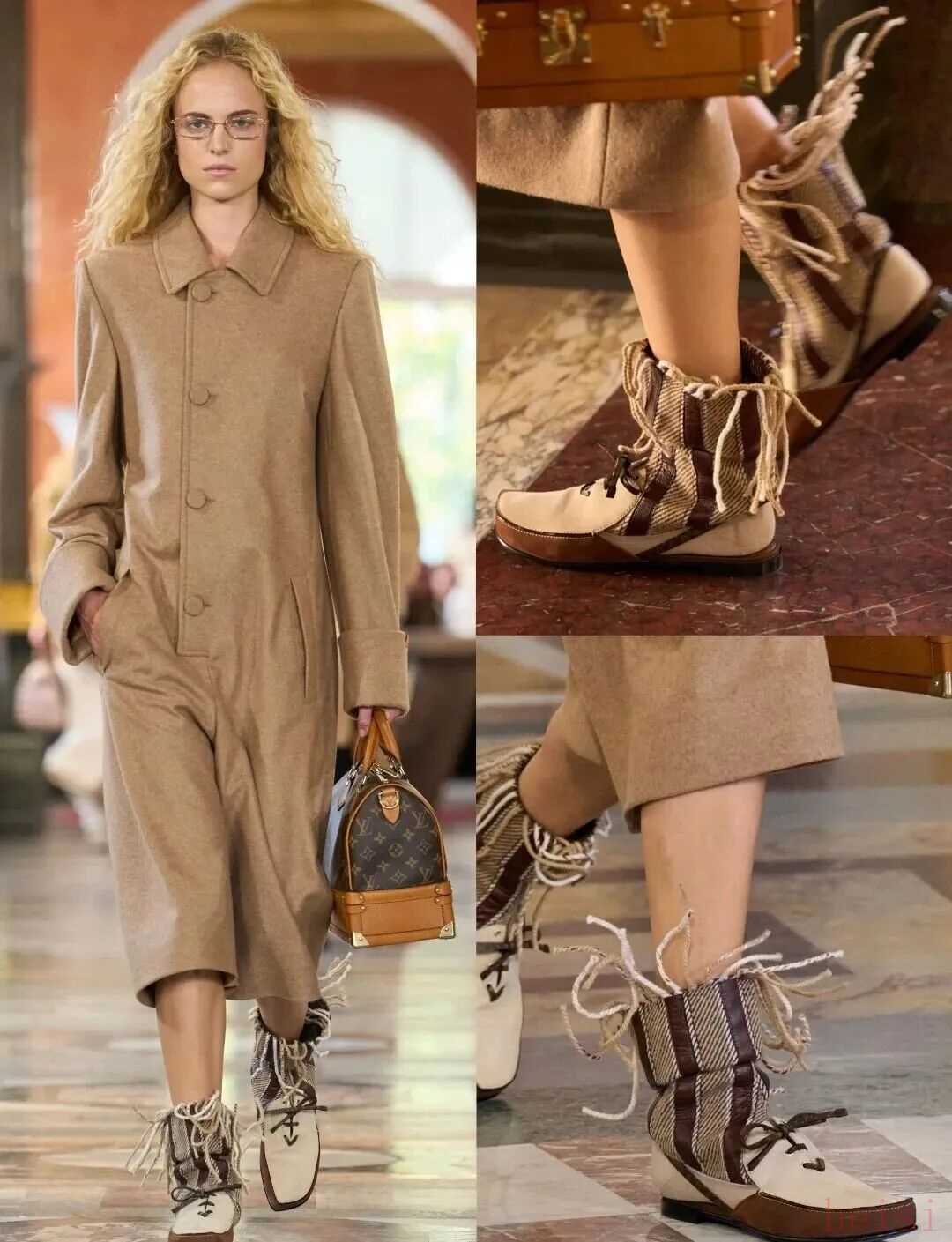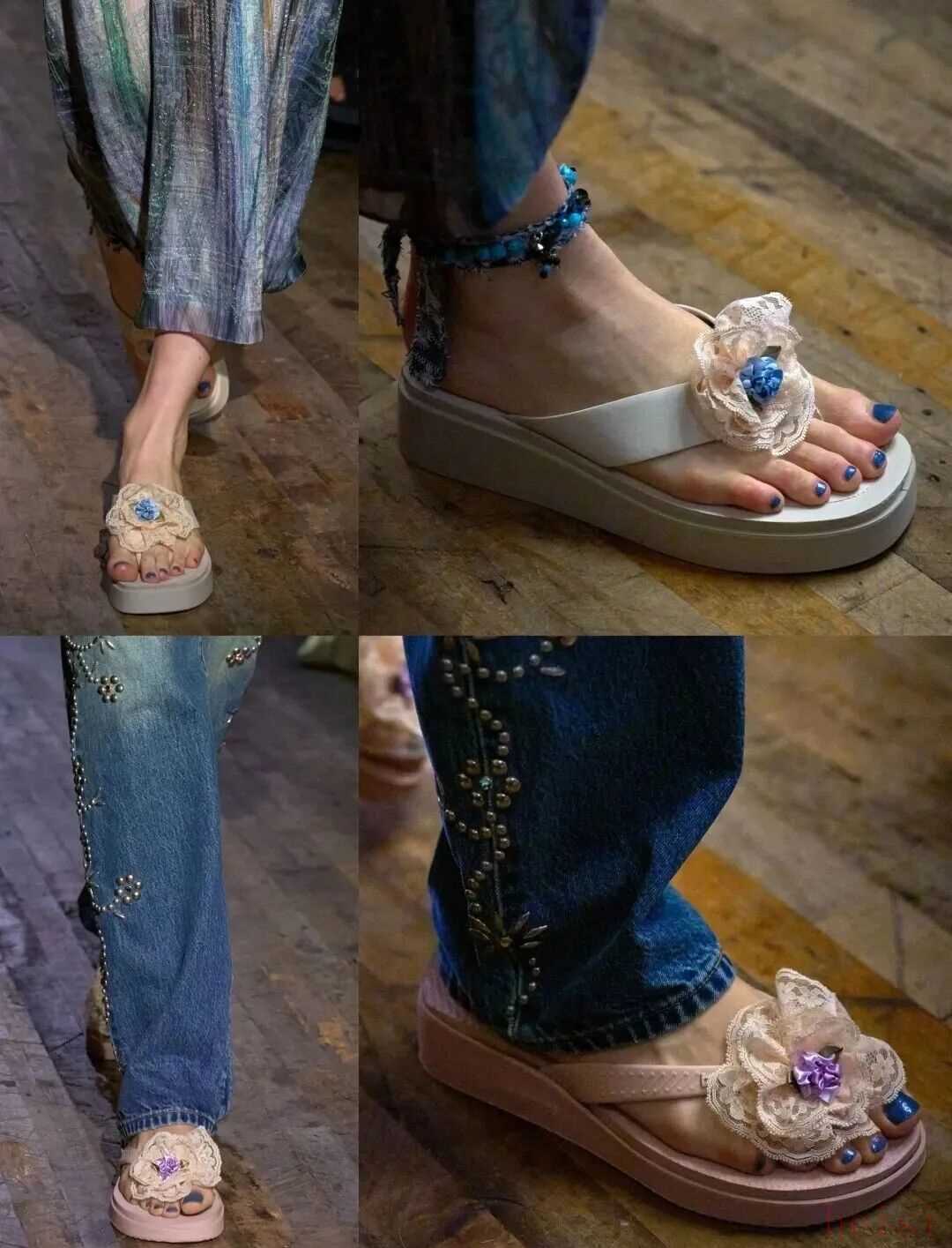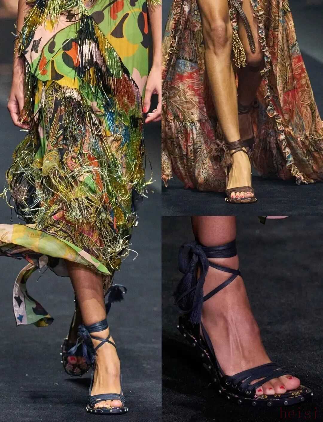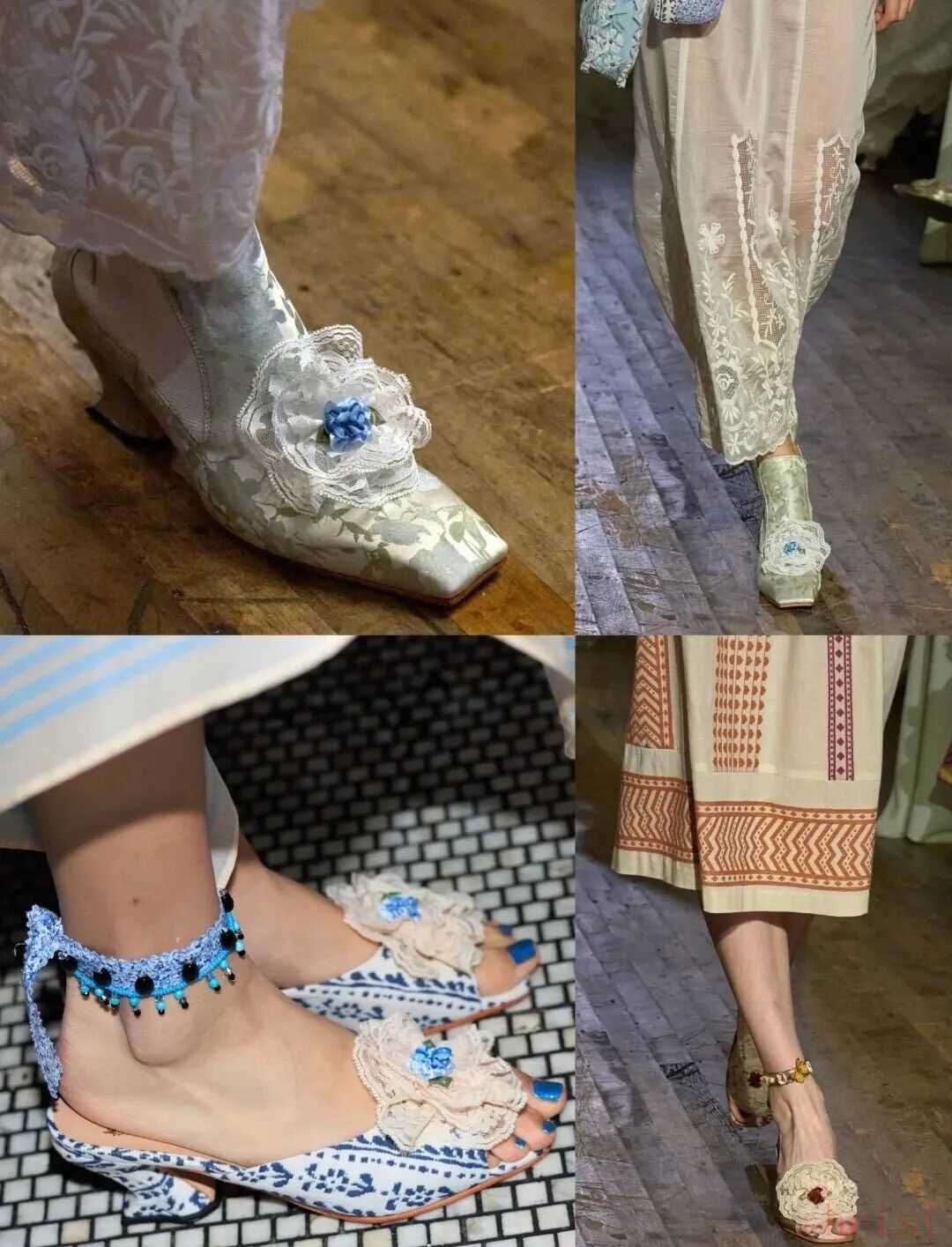 隨著四大國際時裝周(紐約、倫敦、米蘭、巴黎)的正式收官,2026春夏時尚流行走向已逐漸揭曉。2026春夏時裝周,多個品牌新官(創(chuàng)意總監(jiān))上任,比如,Pierpaolo Piccioli帶著Valentino的浪漫主義入主Balenciaga;Simone Bellotti帶著Gucci 16年的男裝功底入主Jil Sander;Louise Trotter帶著“極簡剪裁美學(xué)”從Carven接棒BV;擅長用細(xì)膩的工藝和獨(dú)特的材質(zhì)講故事的Matthieu Blazy則從BV來到了Chanel。新官們?yōu)闀r髦精們上演了一出出“時尚大戲”,同時帶來了許多引人注目的新季鞋履。以Louis Vuitton2026春夏系列鞋款為例,設(shè)計上極具巧思,多元風(fēng)格與文化融合。黑白格紋與皮革拼接,融入品牌標(biāo)識元素,兼具復(fù)古與現(xiàn)代感,是時尚與實(shí)穿的結(jié)合。多彩織毯紋理,搭配金屬扣飾,充滿異域風(fēng)情,仿佛將藝術(shù)織物穿在腳上。紅色流蘇短靴,飾有品牌標(biāo)志性圖案與動物元素,流蘇設(shè)計增添靈動,色彩碰撞吸睛。編織涼鞋結(jié)合皮革與針織材質(zhì),獨(dú)特的編織結(jié)構(gòu)極具設(shè)計感,盡顯品牌在材質(zhì)運(yùn)用上的創(chuàng)新,每一款都細(xì)節(jié)滿滿。為了更全面地呈現(xiàn)2026春夏鞋履趨勢,小世搜集整理了40個品牌的秀場鞋履供大家一覽,建議收藏分析。由于篇幅原因,本期分享以下20大品牌鞋款(按品牌首字母順序),分別是:Acne studios、Anna sui、Balenciaga、Balmain、Burberry、Bottega Veneta、Chanel、Chloé、Dior、Dries van noten、Erdem、Etro、Fendi、Ferragamo、Givenchy、Hermès、Hodakova、Jil Sander、Loewe、Louis vuitton。