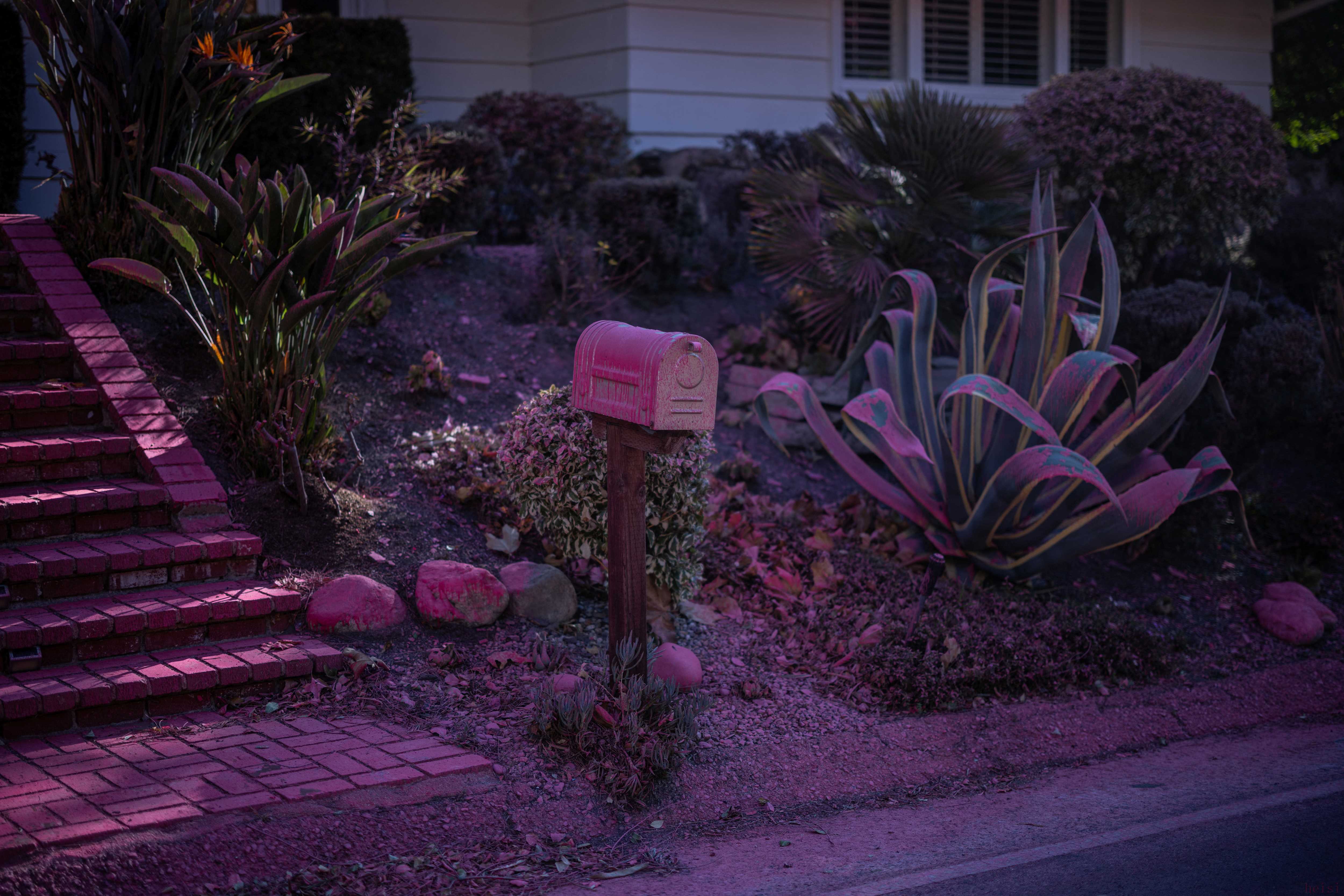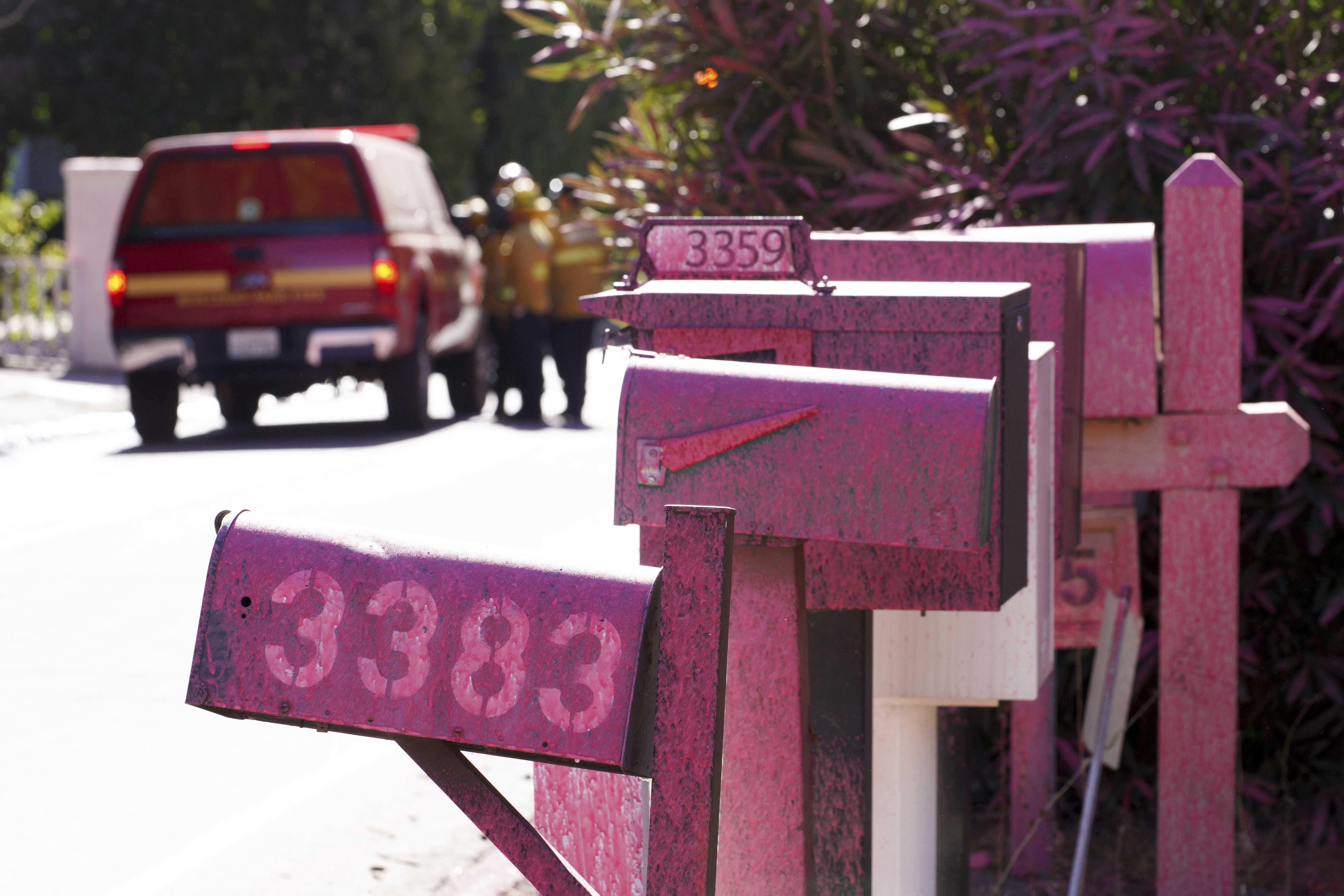 這是1月13日在美國加利福尼亞州洛杉磯曼德維爾峽谷拍攝的噴灑了阻燃劑的郵箱。新華社/路透