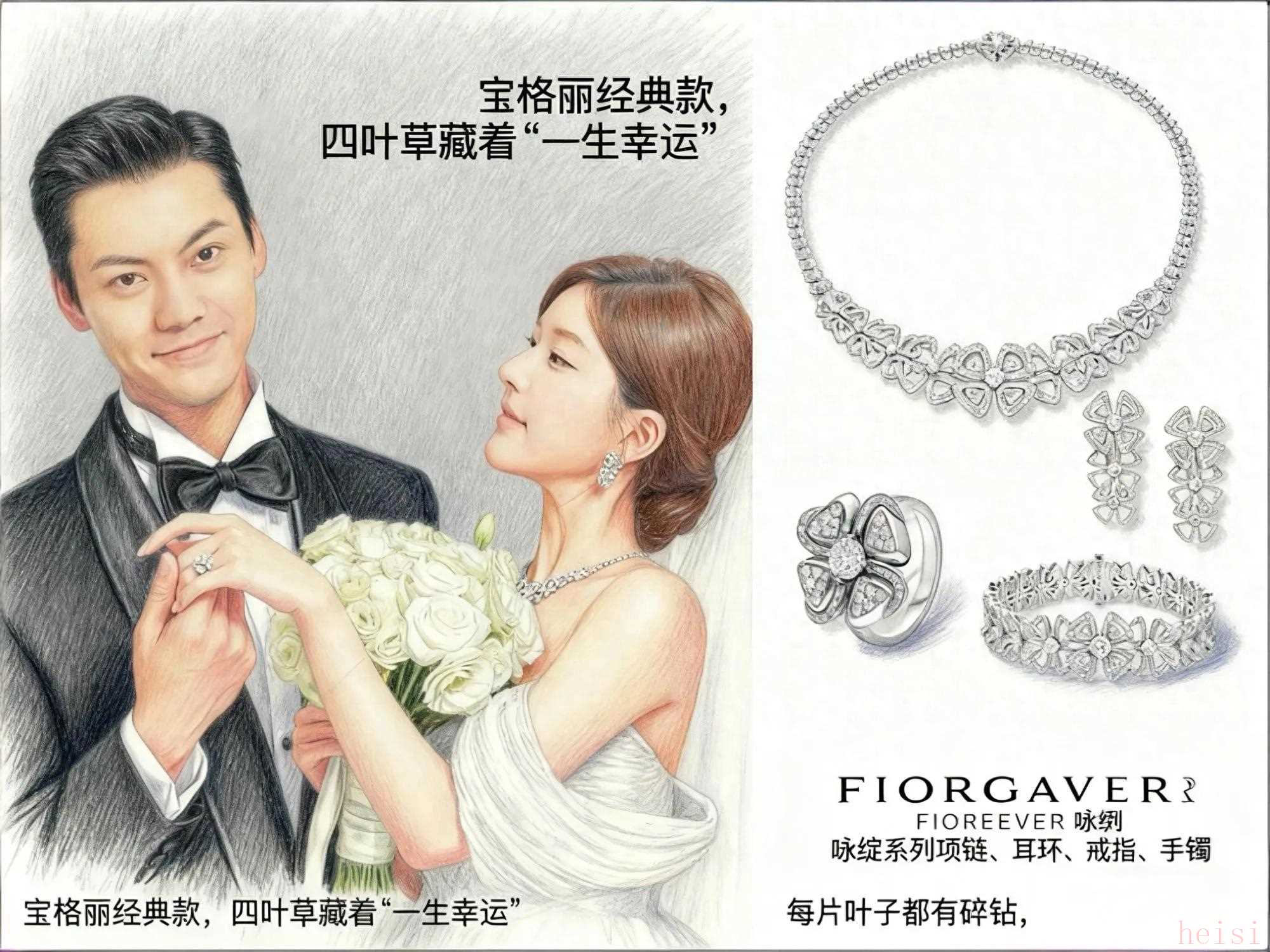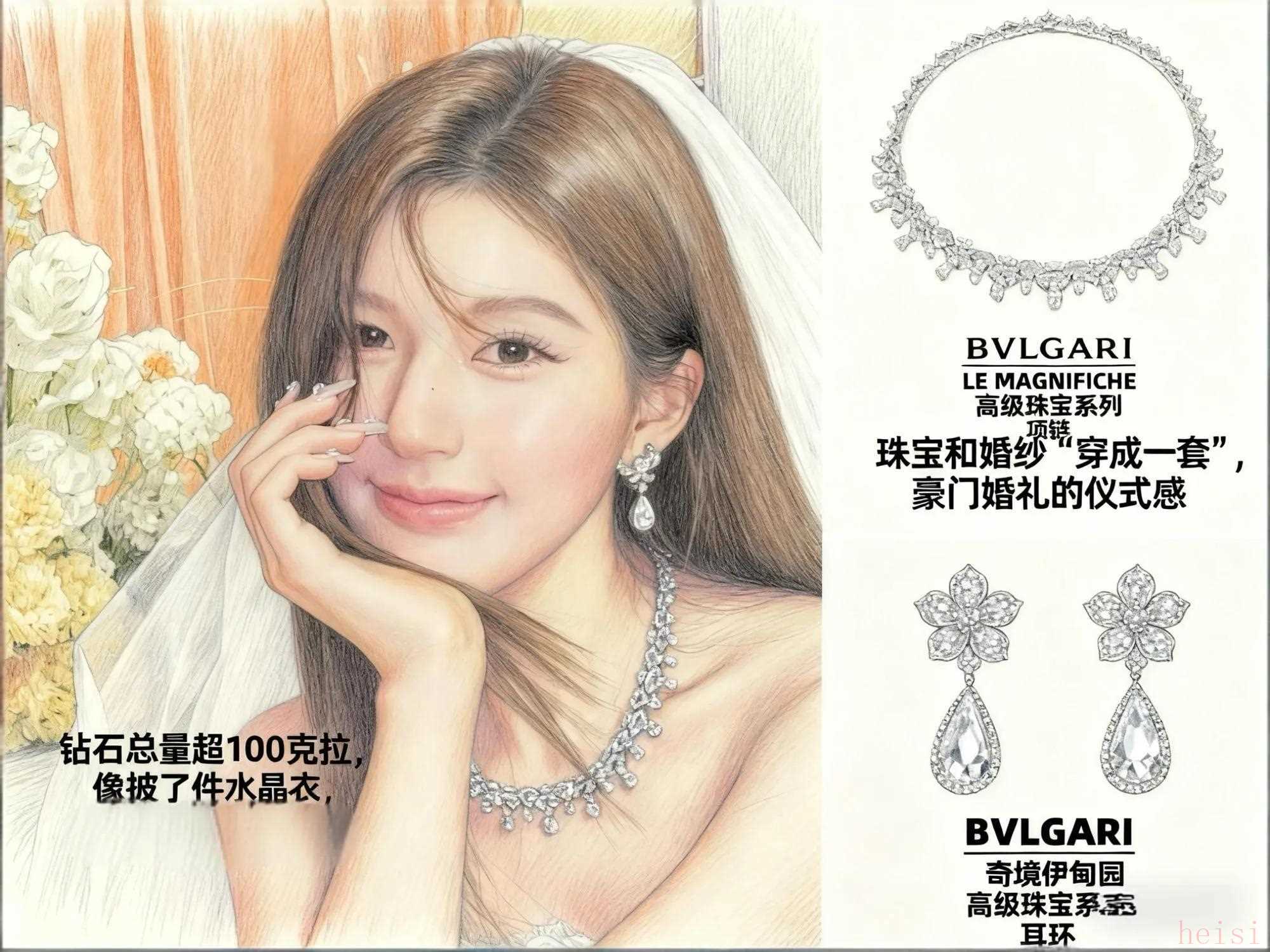 2. "珠寶的象征意義":寶格麗以其獨(dú)特的風(fēng)格(如蛇形、寶格麗藍(lán)、花卉主題等)和精湛工藝聞名。三套不同的珠寶,可能寓意著不同的祝福(如愛情、未來、事業(yè)等),或者對應(yīng)了婚禮的不同環(huán)節(jié),每一套都承載著特殊的意義和品牌特色。