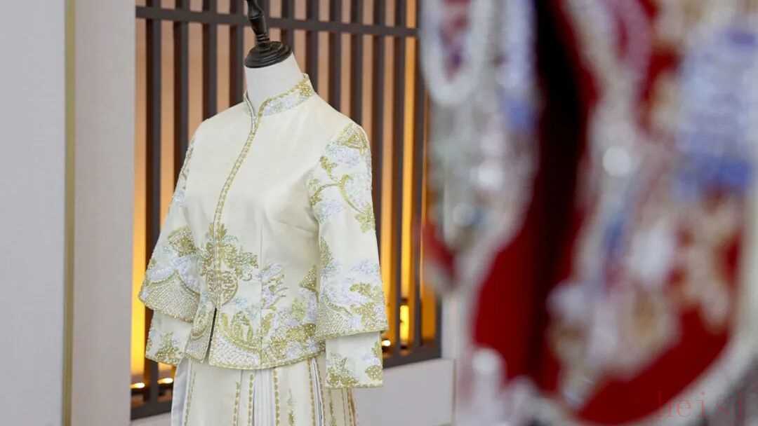 “你看這件酒紅色新中式秀禾服,領(lǐng)口用了非遺盤扣工藝,里層填充的是輕量化羽絨,既能扛住北方冬季婚禮的低溫,又不會顯得臃腫笨重。”在小鎮(zhèn)樣品展廳,安徽浙東婚紗特色小鎮(zhèn)發(fā)展有限公司現(xiàn)場負(fù)責(zé)人張選高拿起一件掛著“展會專供”標(biāo)簽的禮服介紹。展廳內(nèi),數(shù)十件秋冬季婚紗、兒童禮服整齊陳列,均是此次參展的精選產(chǎn)品。他透露,小鎮(zhèn)不僅挑選了兼具保暖性與設(shè)計感的款式,還將在展會現(xiàn)場布置實景美陳,安排多個人臺模特靜態(tài)展示,讓采購商和消費者直觀感受“浪漫不凍人”的禮服設(shè)計。