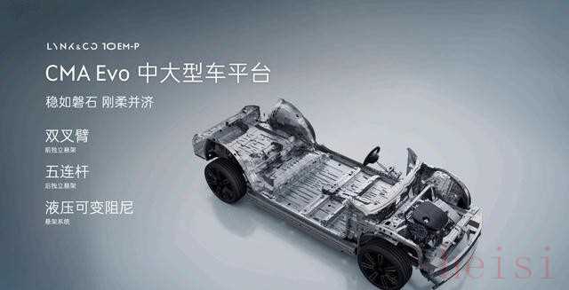 領(lǐng)克10EM-P是在一個(gè)叫CMA Evo的平臺(tái)上造的。它的前懸架是純鋁合金的雙叉臂,后懸架是增強(qiáng)版的五連桿。懸架還有液壓可變阻尼技術(shù),聽(tīng)起來(lái)復(fù)雜,其實(shí)就是為了讓車(chē)子開(kāi)起來(lái)既舒服,又穩(wěn)當(dāng)。