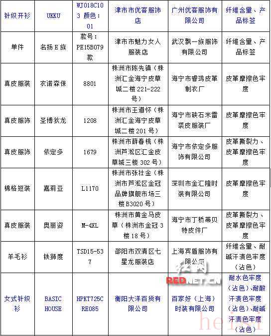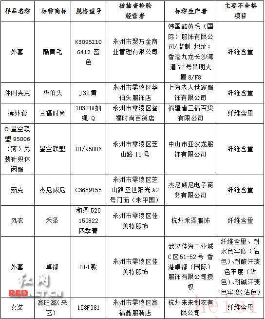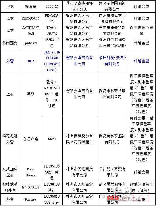 相關(guān)鏈接:成人服飾部分不合格名單: