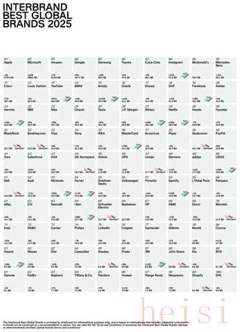 榜單會列出在全球范圍內(nèi)最具價值、最具影響力、最具盈利能力的品牌。它不僅是衡量品牌實力的重要參考,也反映了全球消費者和市場的趨勢。