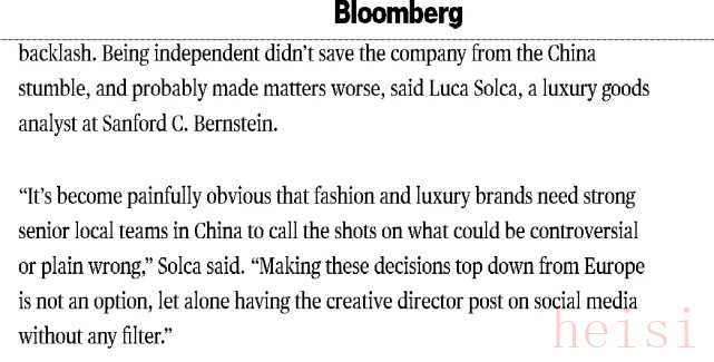 不僅如此,彭博社稱,這家品牌并不想失去中國市場,并為此雇了兩家“國際危機(jī)管理公司”。